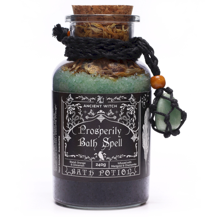 Pozvite svojich zákazníkov, aby privítali hojnosť a pozitívnu energiu vo svojom živote s elixírom Starodávny čarodejnícky kúpeľný elixír Hojnosť – žiarivou rituálnou zmesou inšpirovanou tradičnými čarodejníckymi kúzlami pre prosperitu.