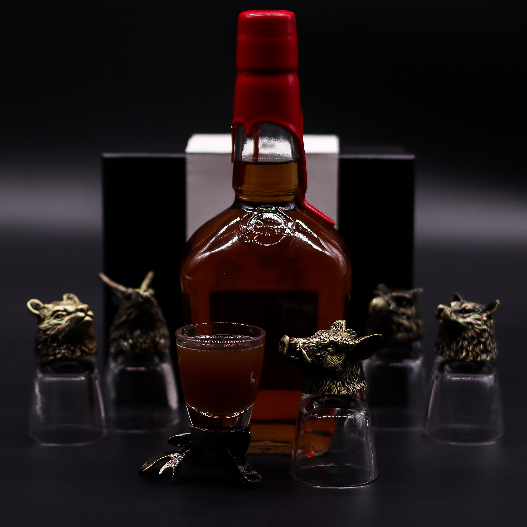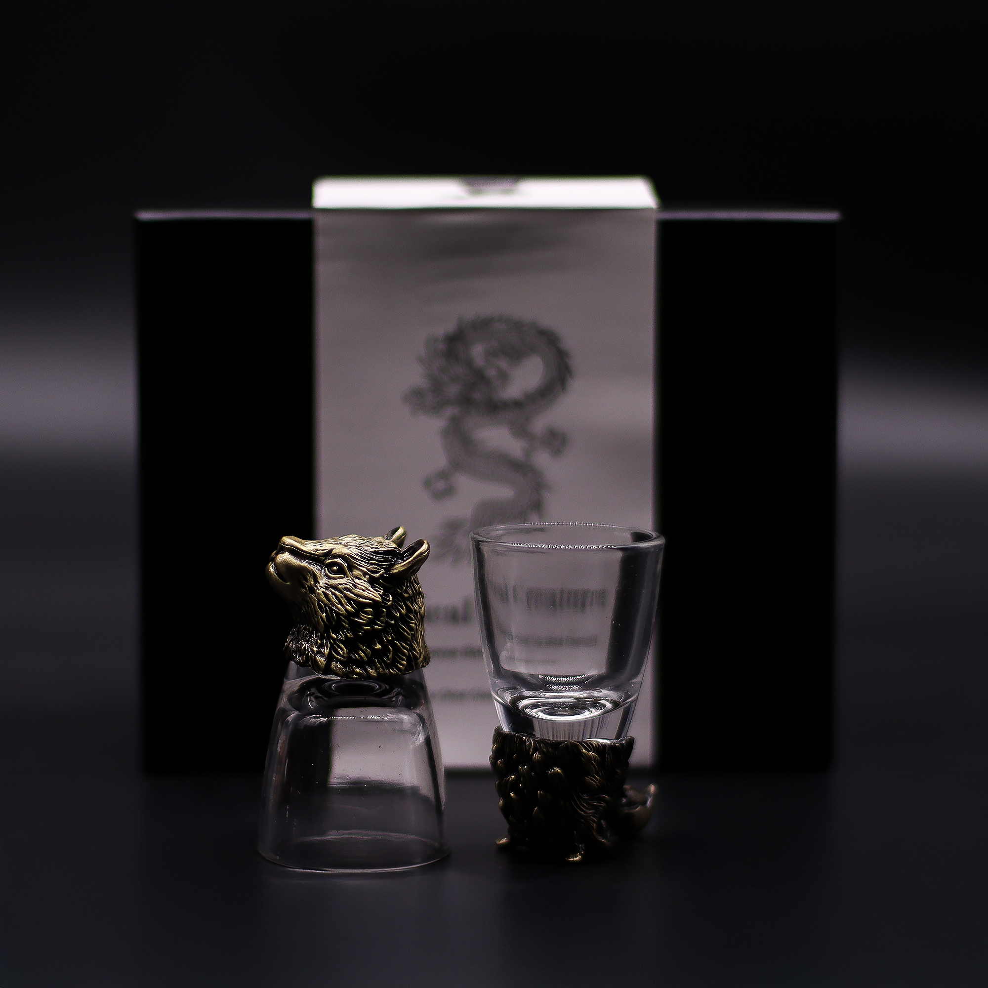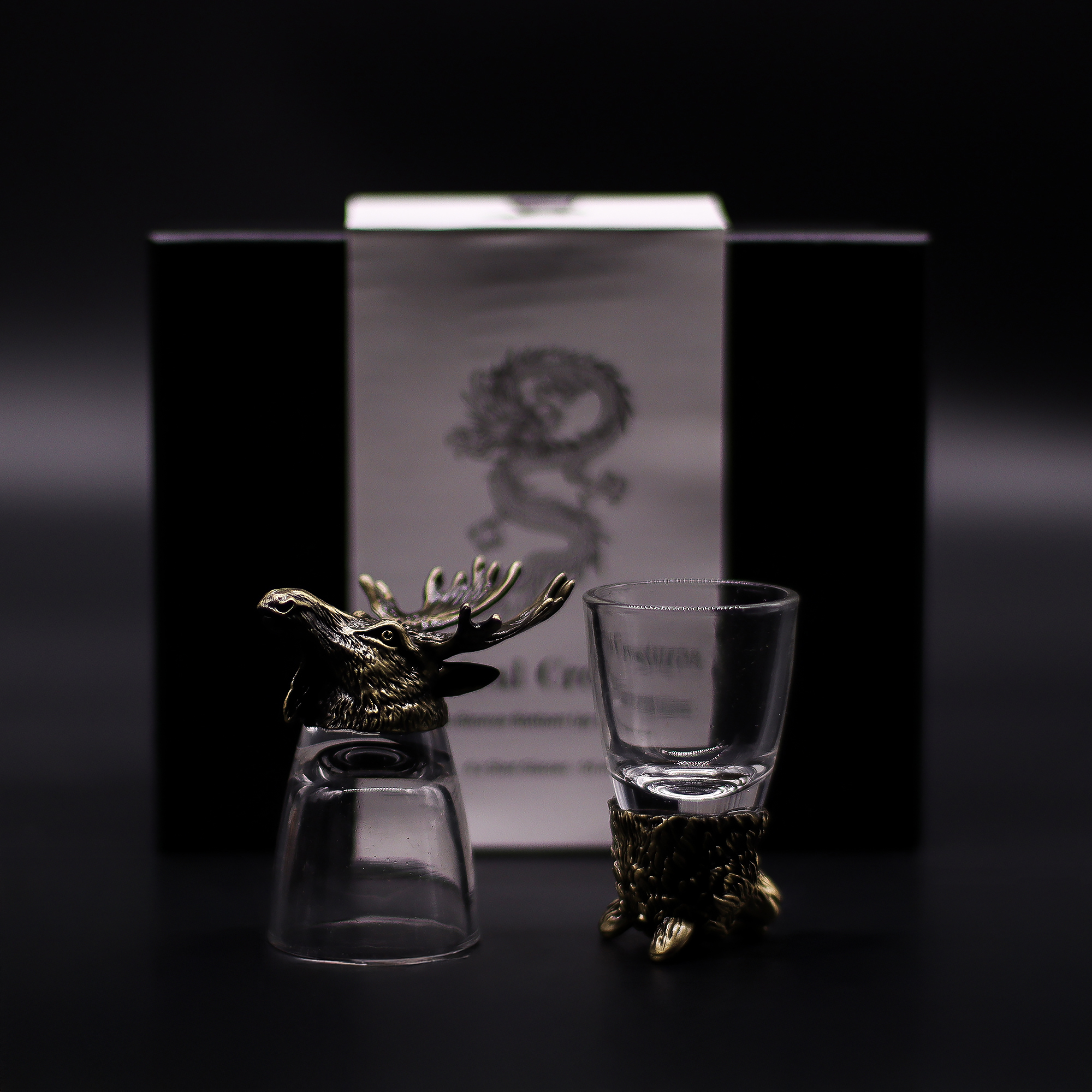 Každý 50 ml pohárik spočíva na mosadznej podstave so sochárskym zobrazením lesných zvierat, ako sú jeleň, medveď, orol, koza, diviak a vlk. Po obrátení sa figúrky odhalia v celej svojej kráse, čím sa každý pohárik mení na malé umelecké dielo a zároveň dekoráciu.