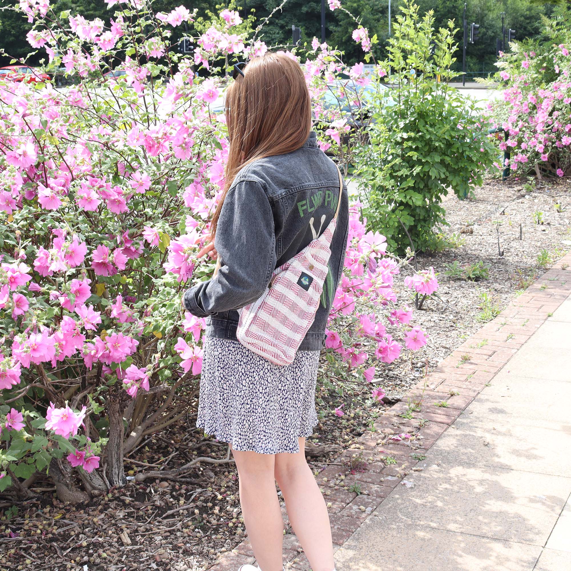 Táto všestranná crossbody taška vyrobená z prírodnej bavlny v nadčasovej hnedej a ružovej farbe kombinuje ekologické materiály s nenáročným štýlom.