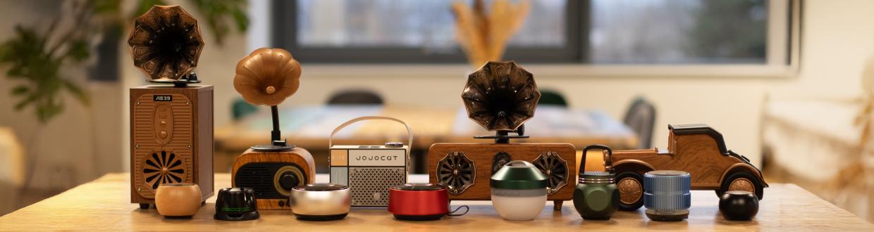 Sortiment zahŕňa čisté minimalistické mini reproduktory, drevené modely a dizajny s mandala efektom, kempingové reproduktory s háčikmi alebo integrovaným osvetlením, ako aj retro štýly inšpirované rádiami. Každý kus má malé rozmery, no vysokú vnímanú hodnotu – ideálny na police, nočné stolíky, pracovné stoly, terasy či na vonkajšie použitie.