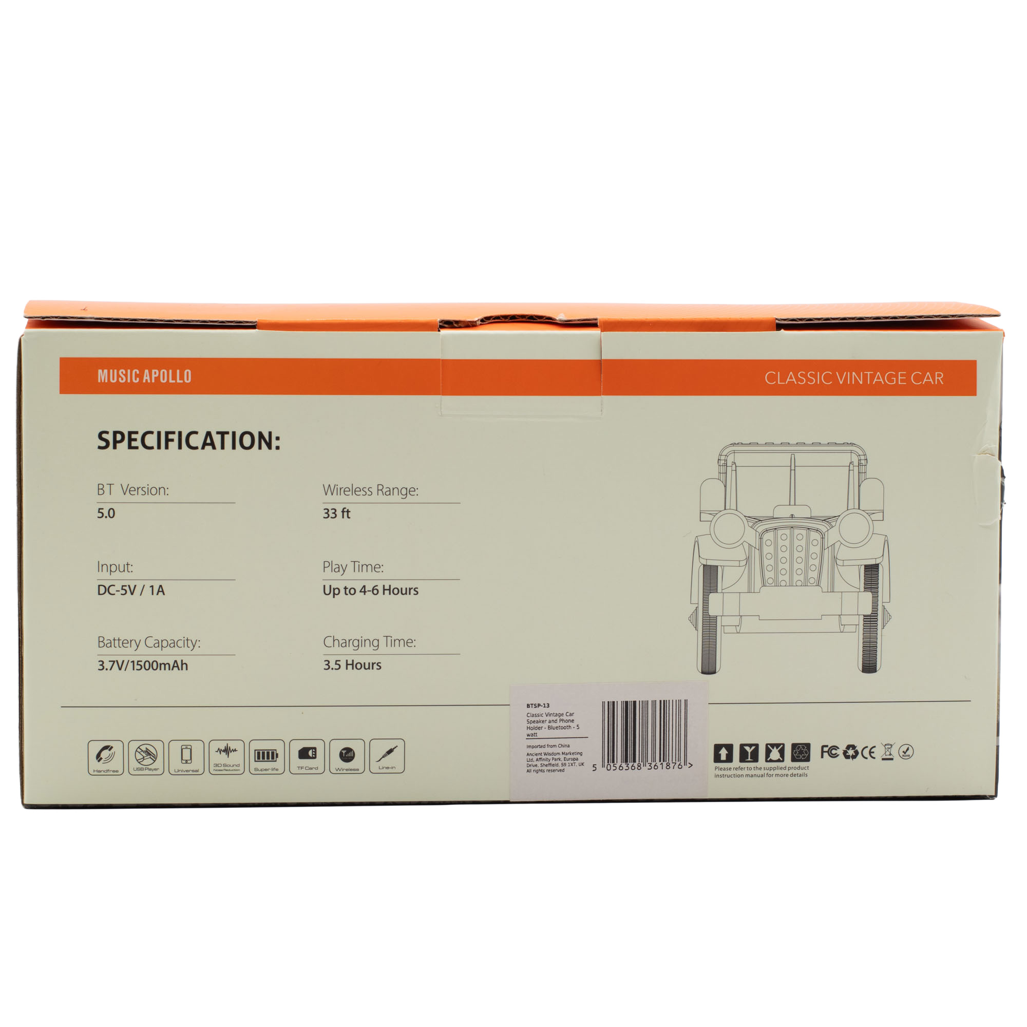 Navrhnutý v tvare klasického vintage auta, tento Bluetooth reproduktor zároveň slúži ako praktický držiak na telefón, čím vytvára dekoratívny aj funkčný doplnok na pracovný stôl, poličku či nočný stolík. Povrch s efektom dreva a retro dizajn zvyšujú jeho vizuálnu atraktivitu, zatiaľ čo integrovaný reproduktor poskytuje čistý a vyvážený zvuk vzhľadom na kompaktné rozmery.