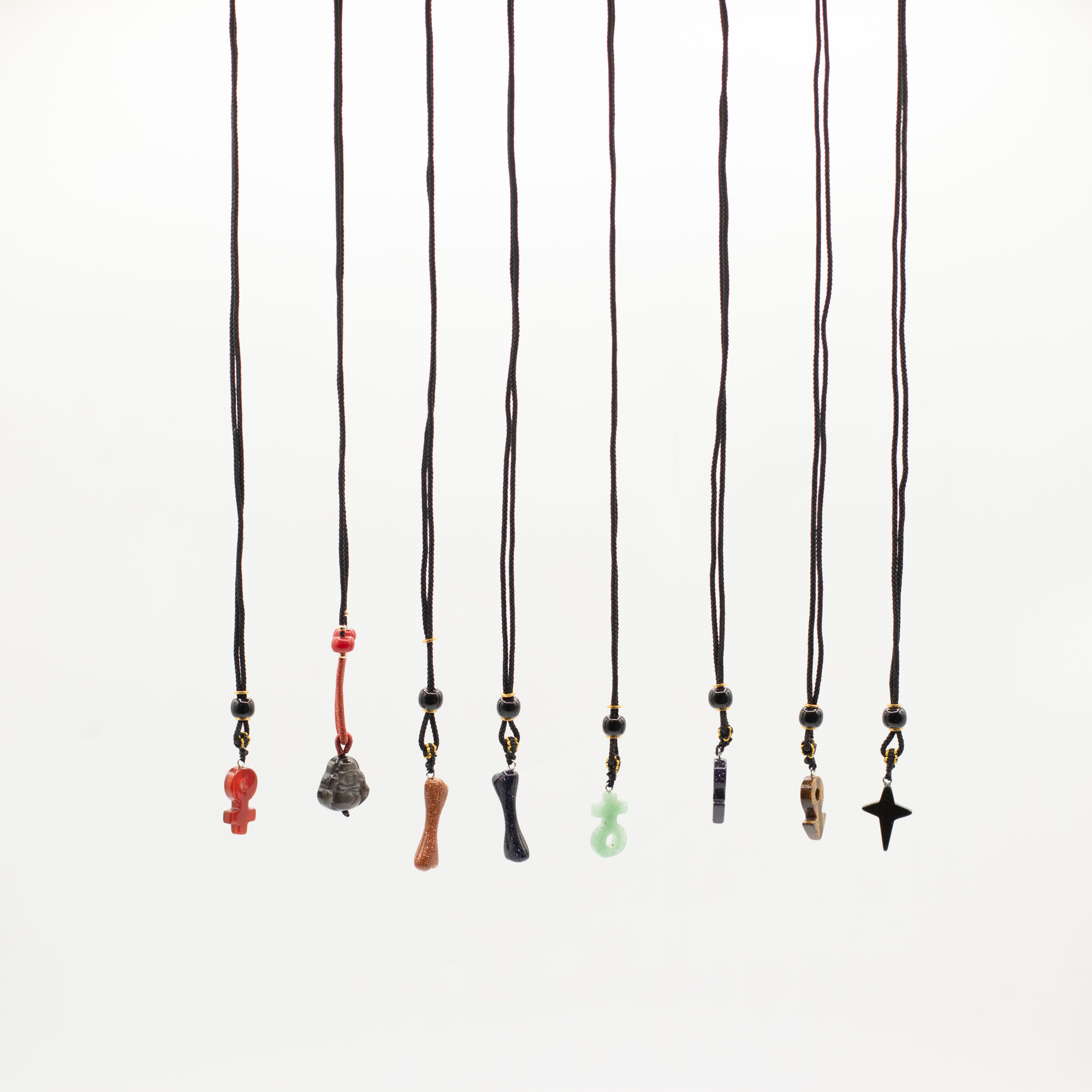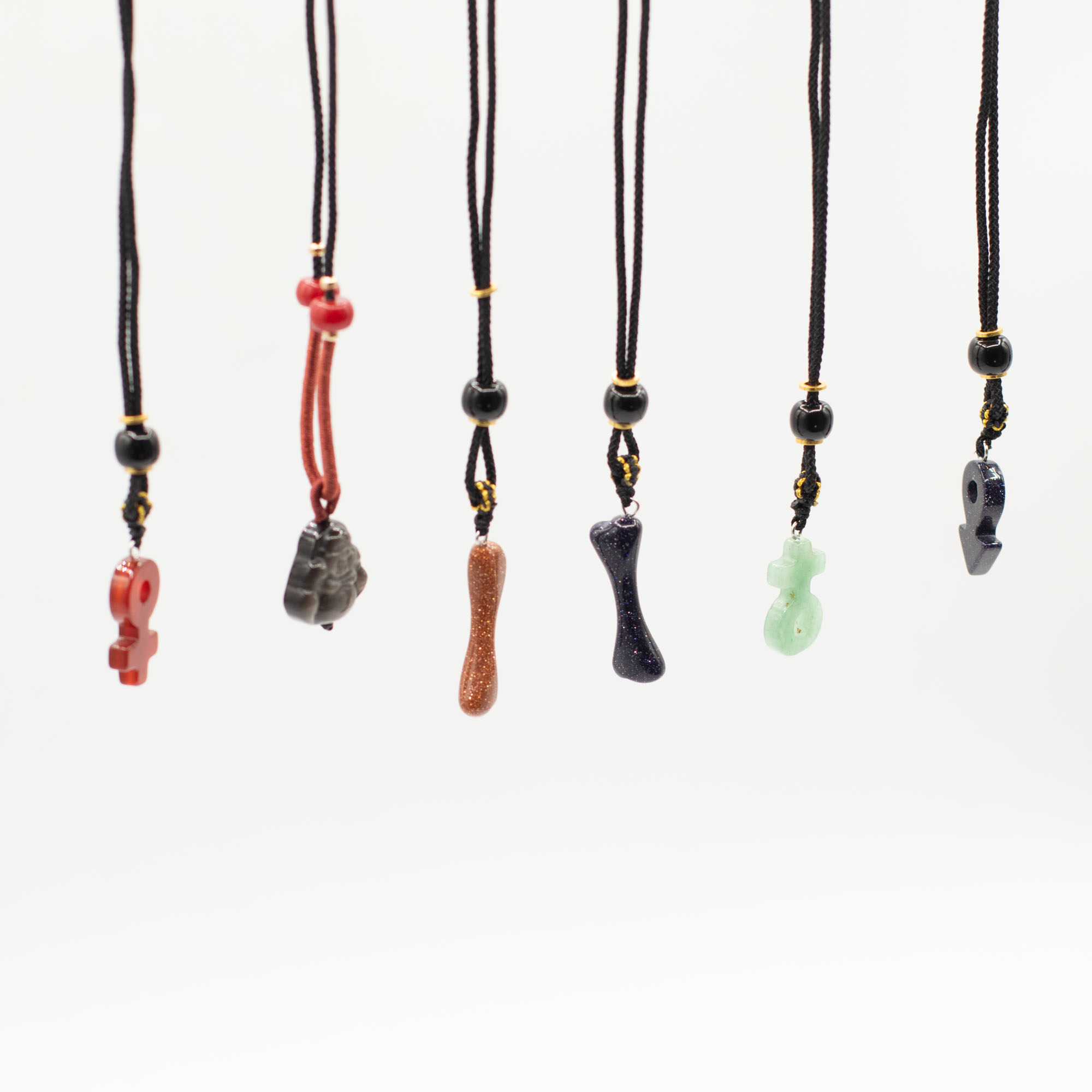 V assortmente nájdete rôzne ikonické motívy, napríklad kríže, symbolické znamenia, postavy Budhu a ďalšie rozpoznateľné duchovné či kultúrne dizajny. Každý prívesok je vyrezávaný z rôznych prírodných drahokamov, takže ponúka jedinečné farebné odtiene aj prirodzenú kresbu kameňa.