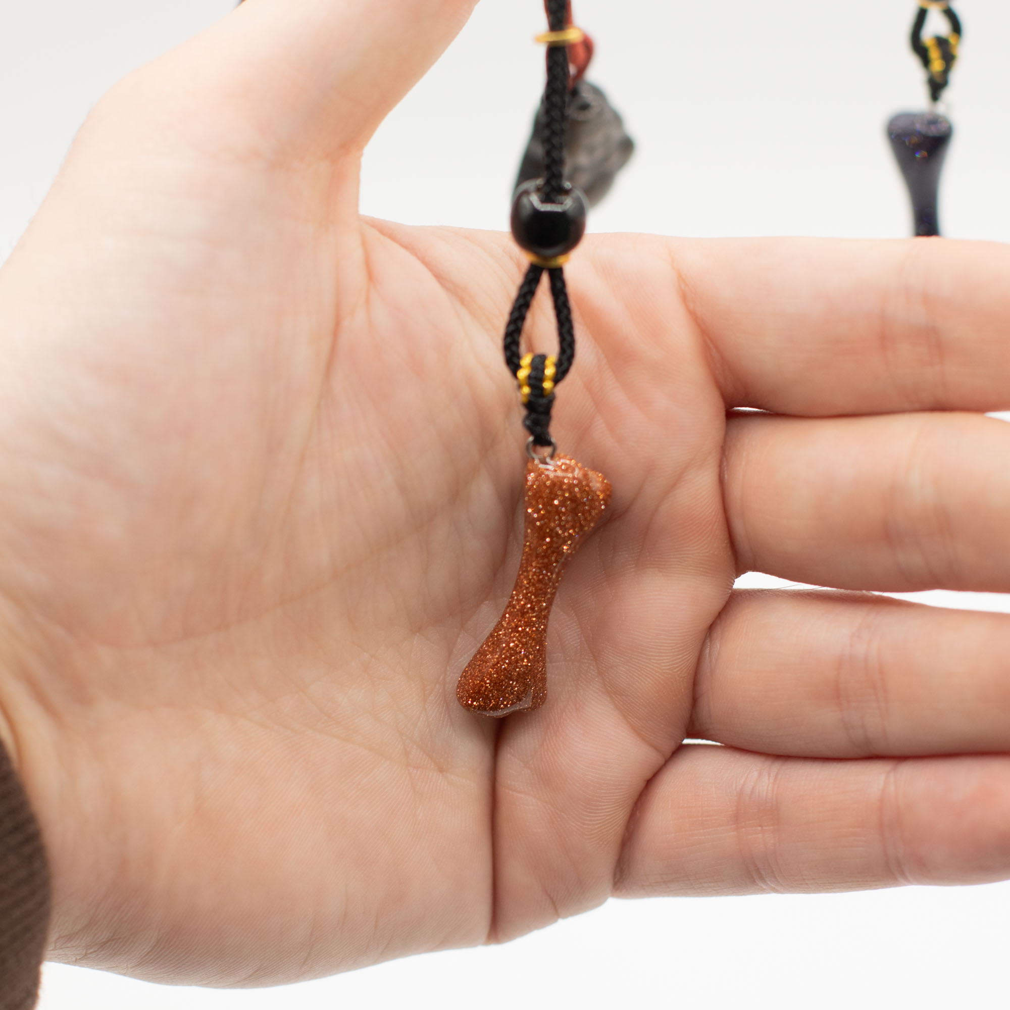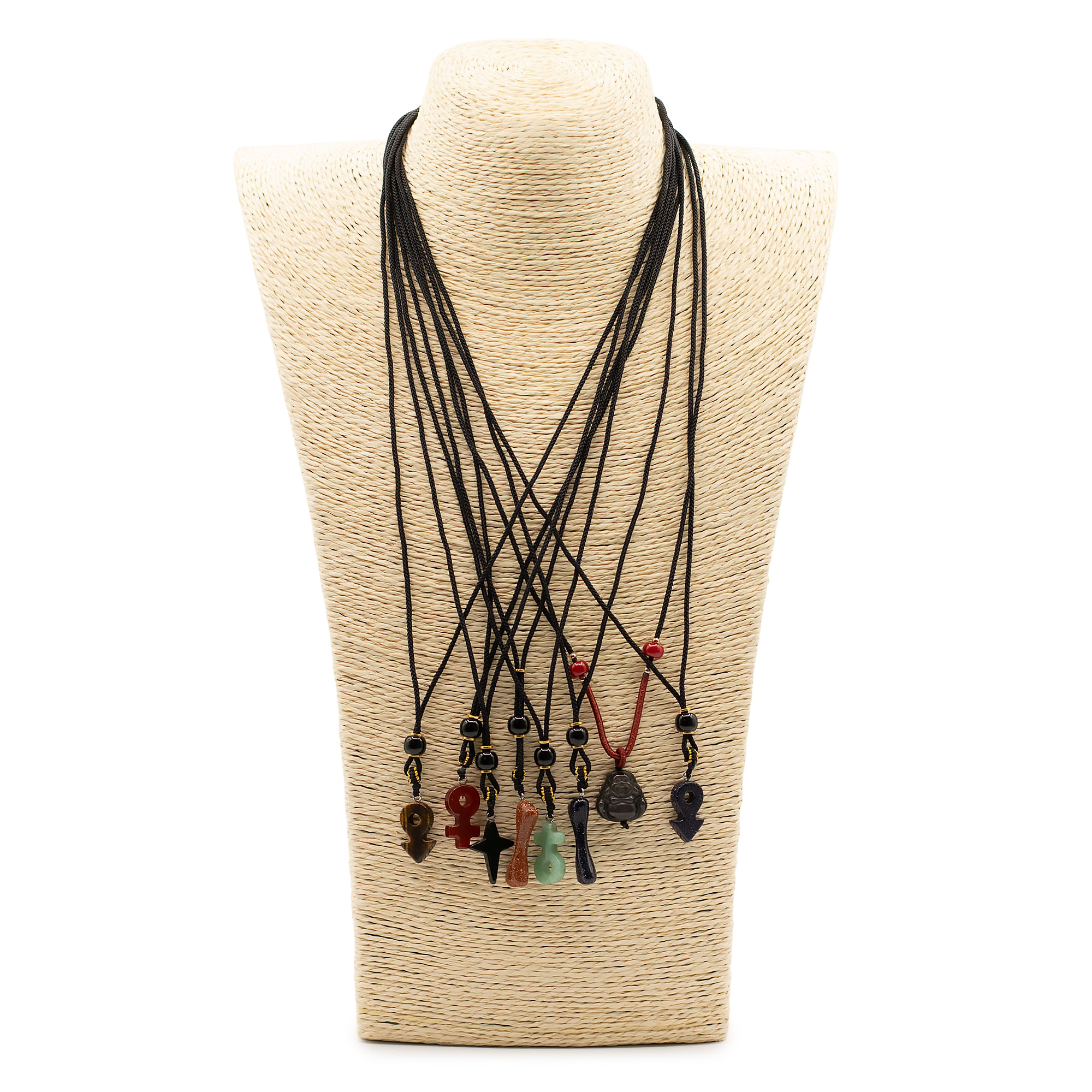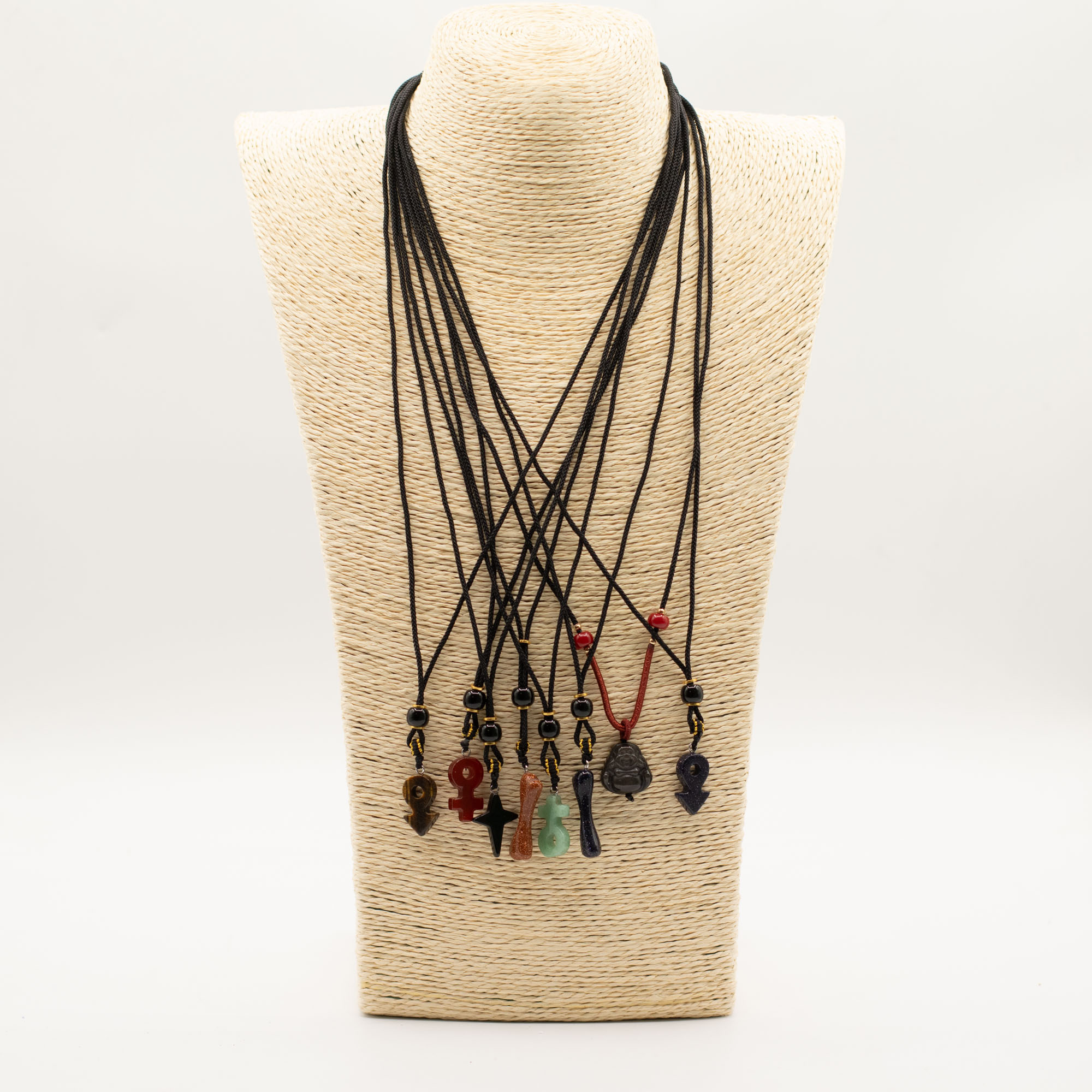 Každý kus je zavesený na nastaviteľnej šnúrke a doplnený dekoratívnymi korálkami, čím vzniká doplnok pripravený na okamžitý predaj s výraznou vizuálnou príťažlivosťou.