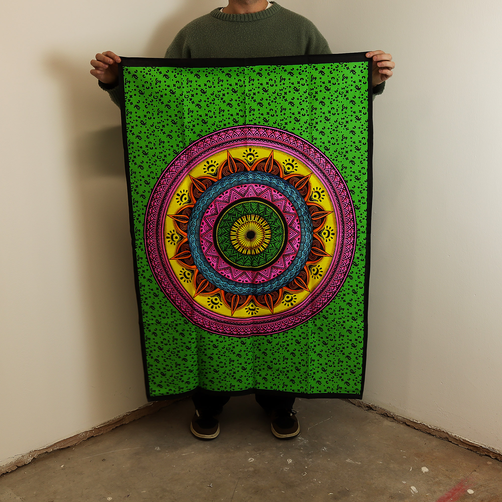 Tento farebný indický nástenný prehoz s mandalou vyžaruje rovnováhu a pokoj prostredníctvom svojej kruhovej symetrie. Mandala je starobylý duchovný symbol predstavujúci vesmír a všímavosť – obľúbený motív medzi modernými zákazníkmi, ktorí hľadajú sústredenie a pozitívnu energiu vo svojom domove.