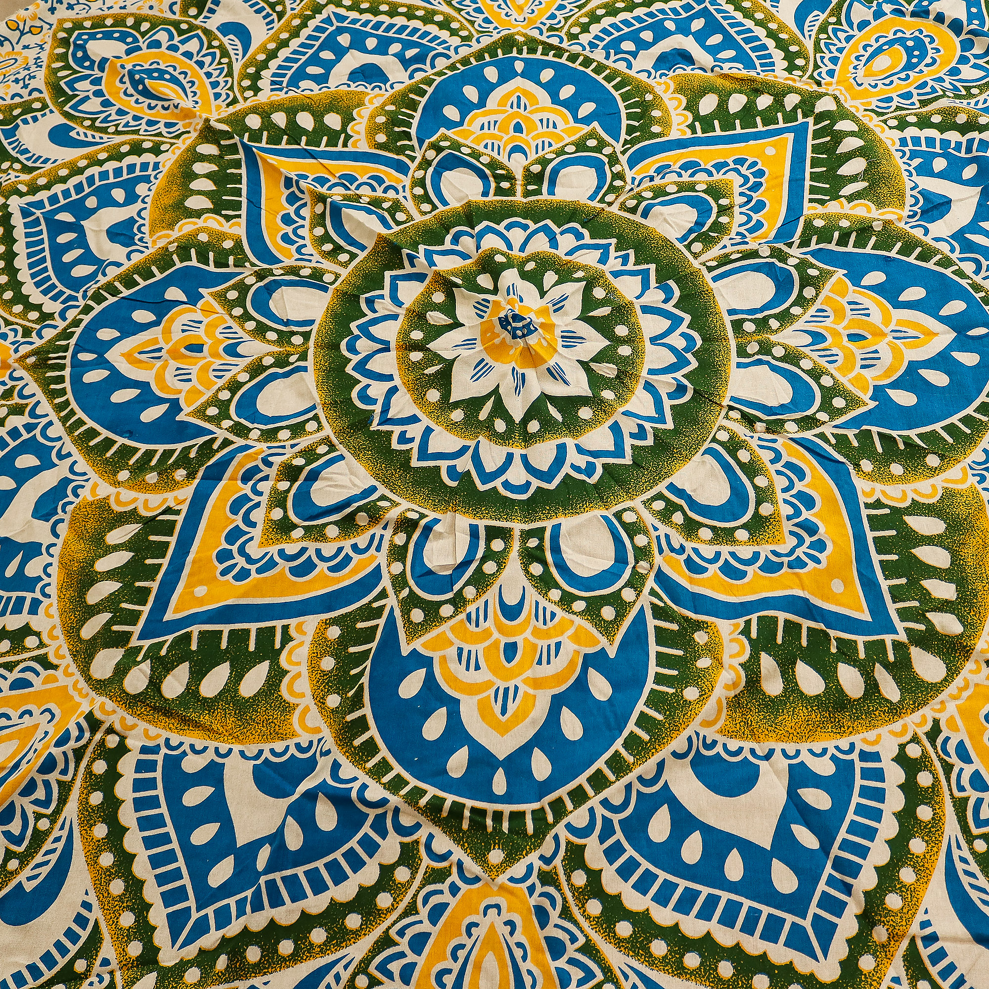 Každý kus je ručná práca z Indie, vyrobený z jemnej a ľahkej bavlny a potlačený prepracovanými mandalovými vzormi v bohatých, harmonicky zladených farbách. Ideálne doplnia bohémske, jógové či meditačné kolekcie, kde vytvárajú pokojné centrum priestoru a dokonale ladia s trendom vedomého a duchovného životného štýlu.