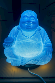 Chladnejšie poňatie výrazného osvetlenia, tienidlo Smejúci sa Budha – svetlomodrý, prináša do každého priestoru svieži a pokojný nádych. Jemné modré svetlo vytvára uvoľnenú atmosféru, pričom si zachováva svoju úlohu dekoratívneho prvku.