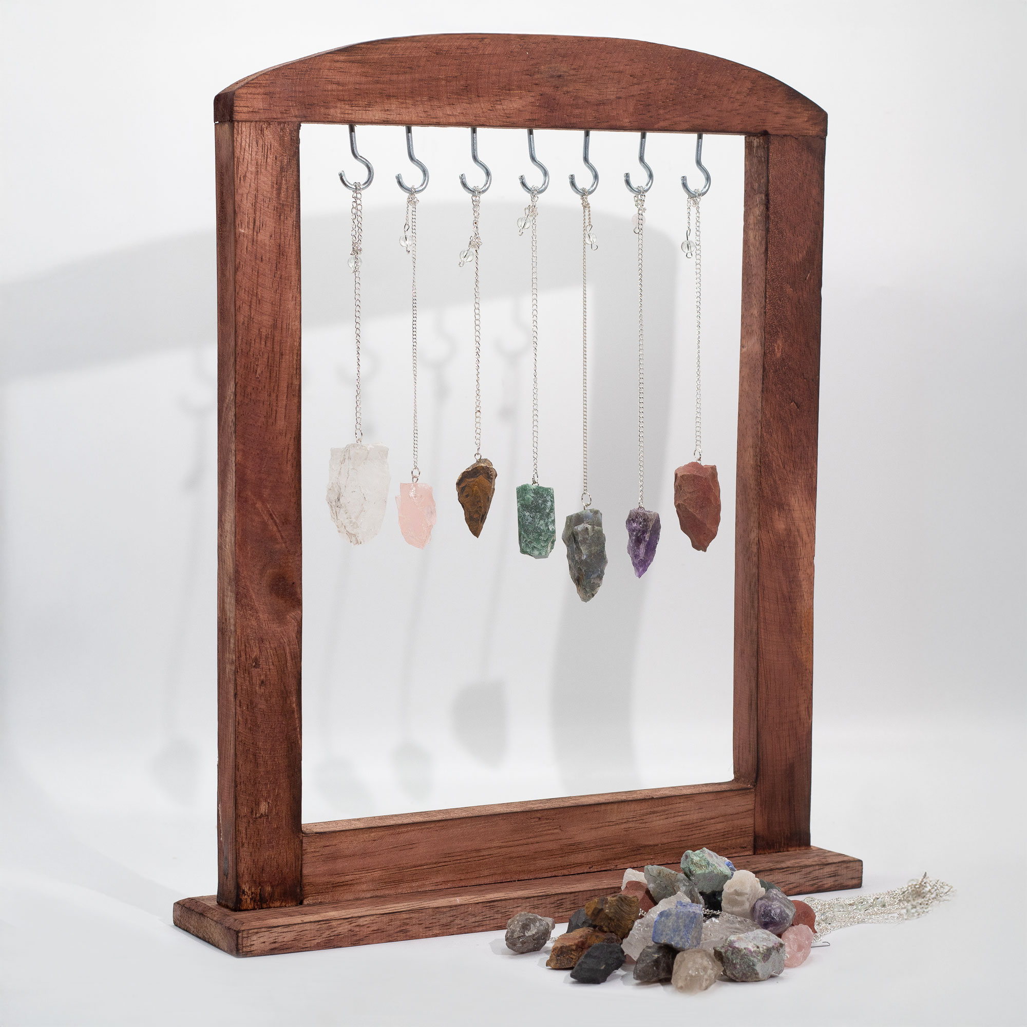 S touto veľkoobchodnou sadou získate 36 kyvadiel z drahých kameňov spolu s dreveným stojanom zdarma, vďaka čomu okamžite vytvoríte predajný displej pripravený na použitie – bez dodatočných nákladov.
