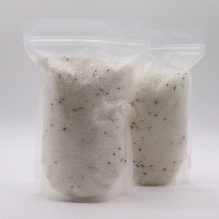 Vytvorená pre upokojujúce večerné rituály, aromaterapeutická Epsomská soľ do kúpeľa s levanduľou – Pokojný Spánok spája horečnatú Epsom soľ s upokojujúcim levanduľovým esenciálnym olejom, jemnými levanduľovými kvetmi a vyživujúcim mandľovým olejom. Dodávaná je v čistom prevedení bez etikety, pripravená pre vašu vlastnú značku.