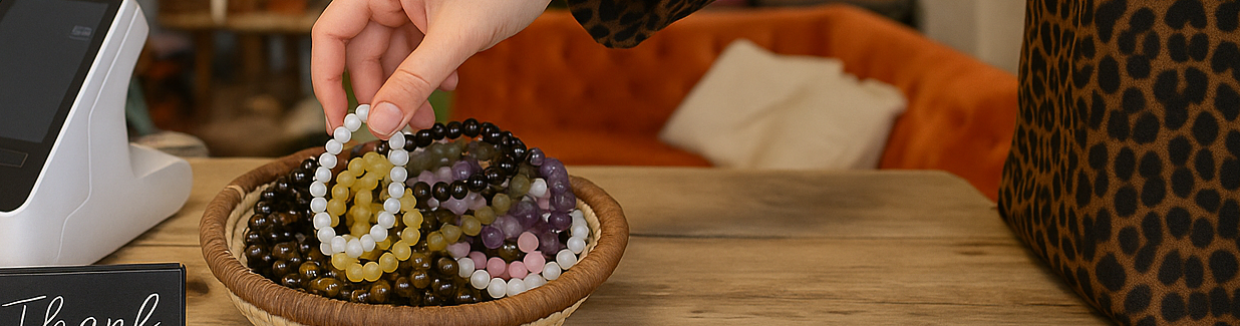 Produkty ako Energetické Náramky alebo Náramky Priateľstva sú skvelým impulzným doplnkom. Prinášajú farbu, sú pohodlné na nosenie a často sa kupujú ako drobné „len tak“ darčeky alebo symbolické talizmany. Umiestnite ich blízko pultu pre rýchly, emocionálny predaj.