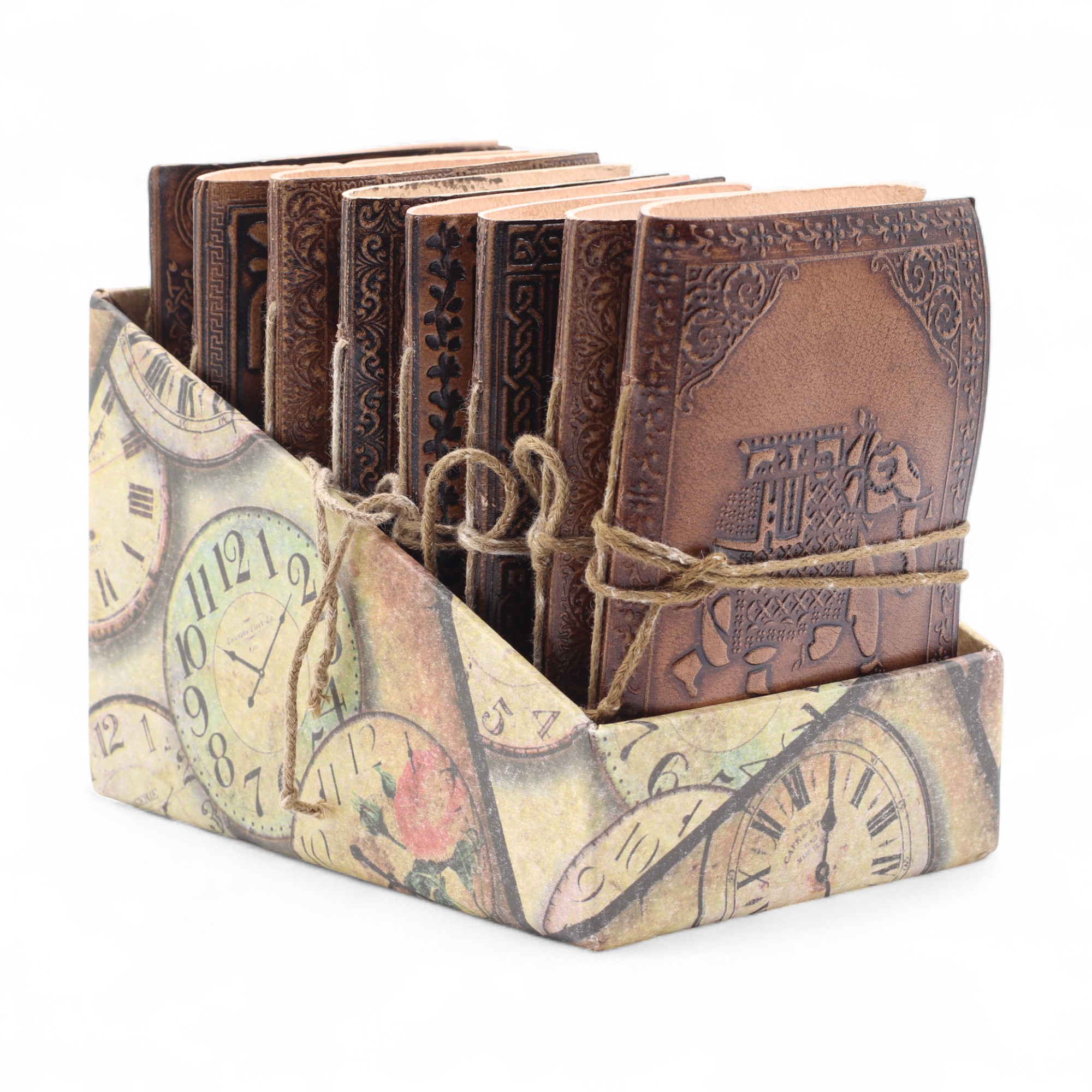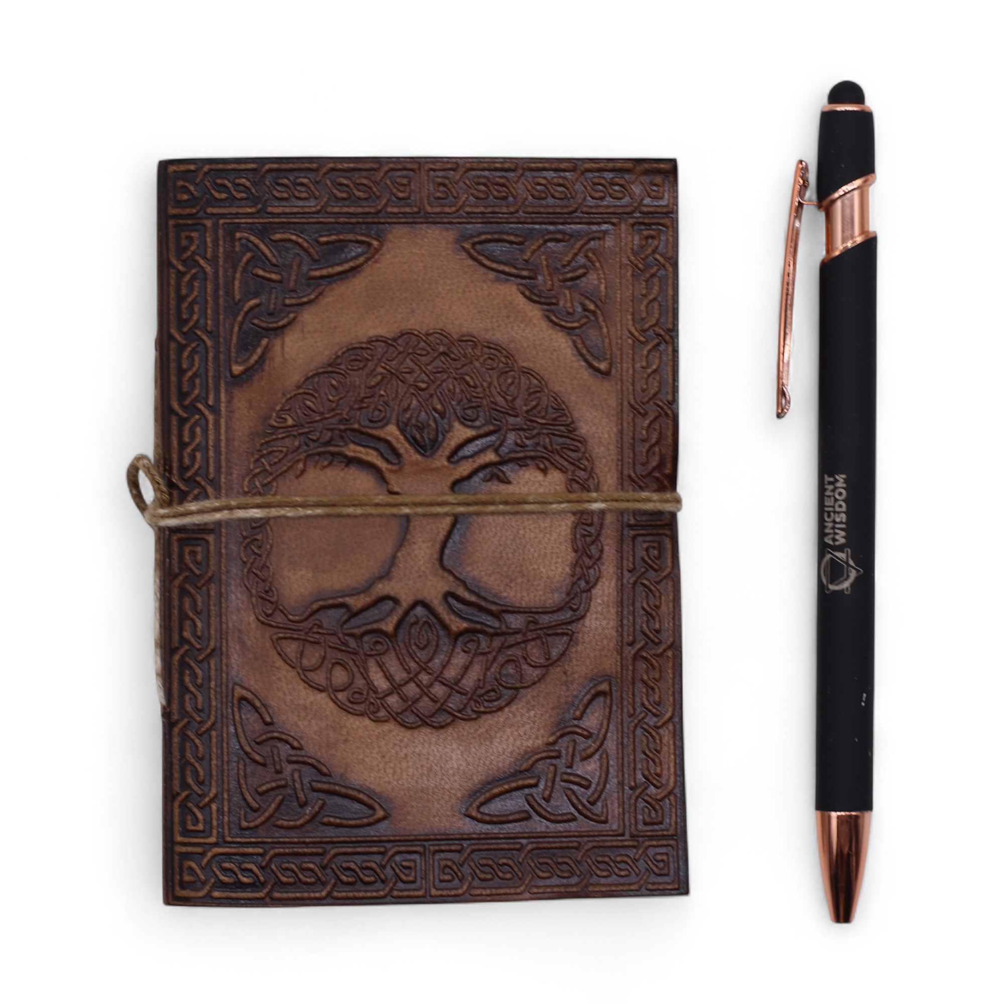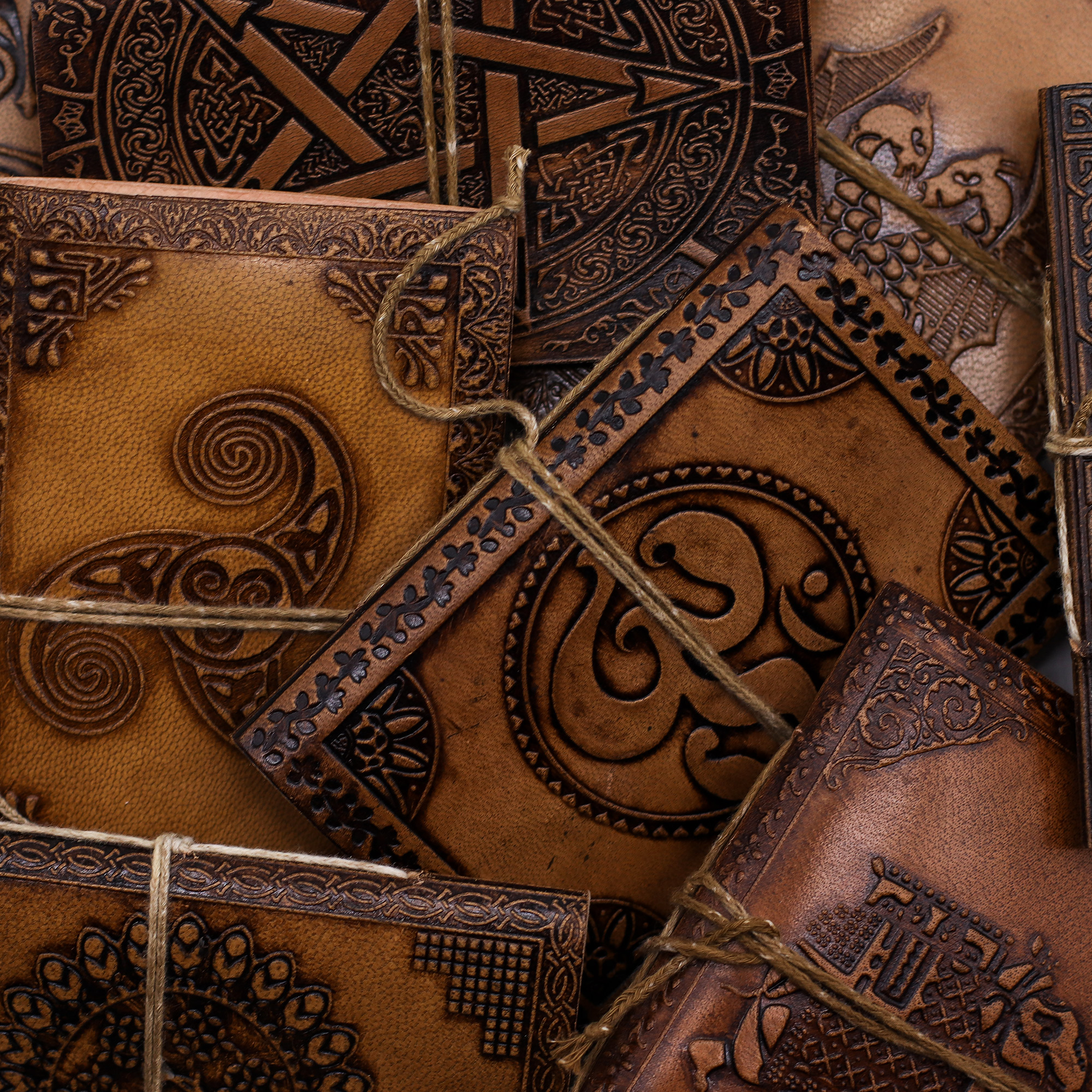 Kompaktná kolekcia ručne vyrábaných kožených zápisníkov s reliéfnymi ezoterickými a duchovnými motívmi, ako sú Strom života, Pentagram či symbol Óm. Každý zápisník je zviazaný rustikálnou šnúrkou na ovinutie, ktorá mu dodáva vintage nádych a zároveň spoľahlivo chráni strany.