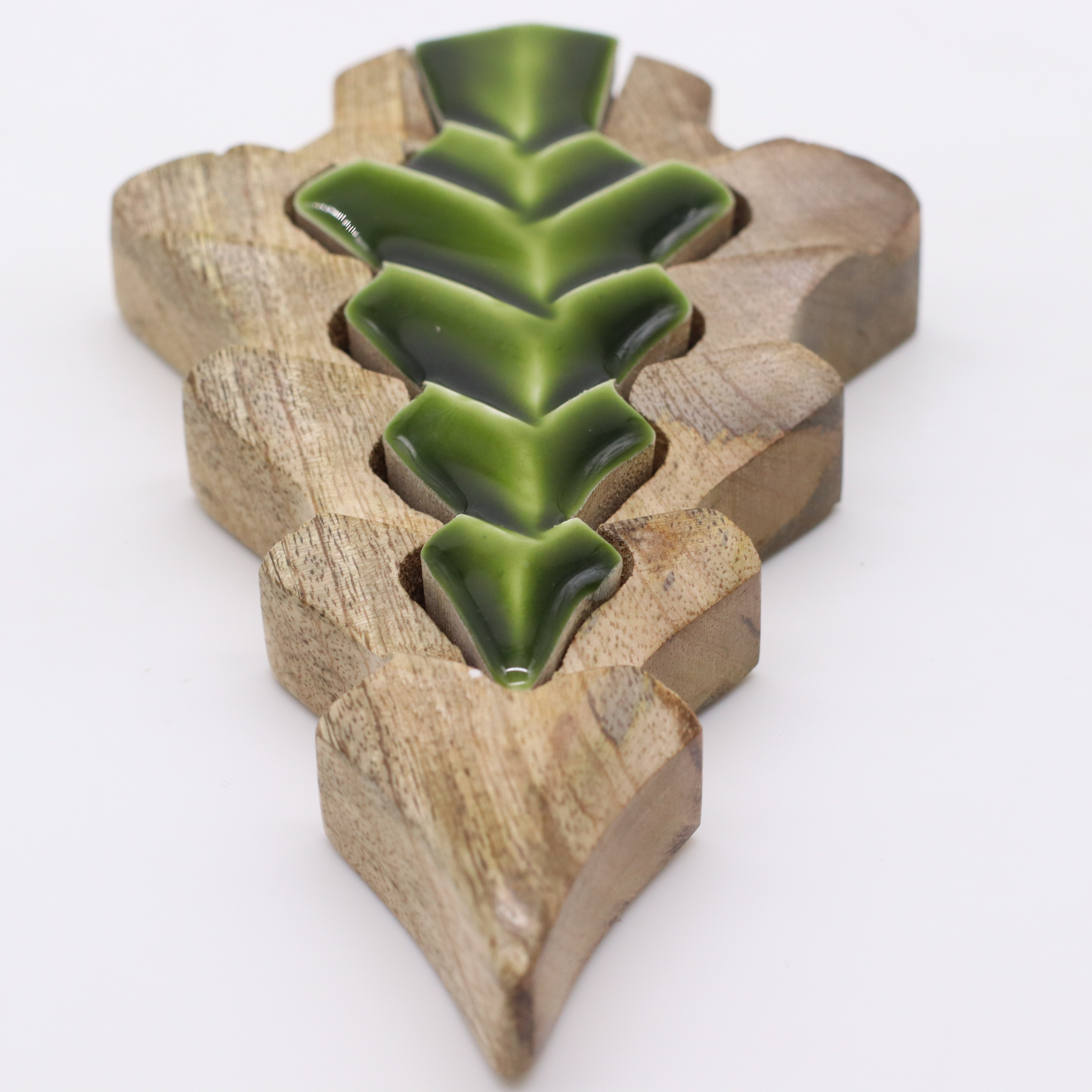 Táto očarujúca malá dekorácia „Strom v strome“ zachytáva kúzlo lesnej prírody v kompaktnom formáte, čo z nej robí lákavý darček na spontánny nákup. Ručne vyrezávaná v Indii z udržateľného mangového dreva, zaujme jemným siluetovým motívom stromu v strome. Povrch je ošetrený lesklou smaltovanou úpravou, ktorá kombinuje rustikálnu štruktúru s výrazným zeleným akcentom.