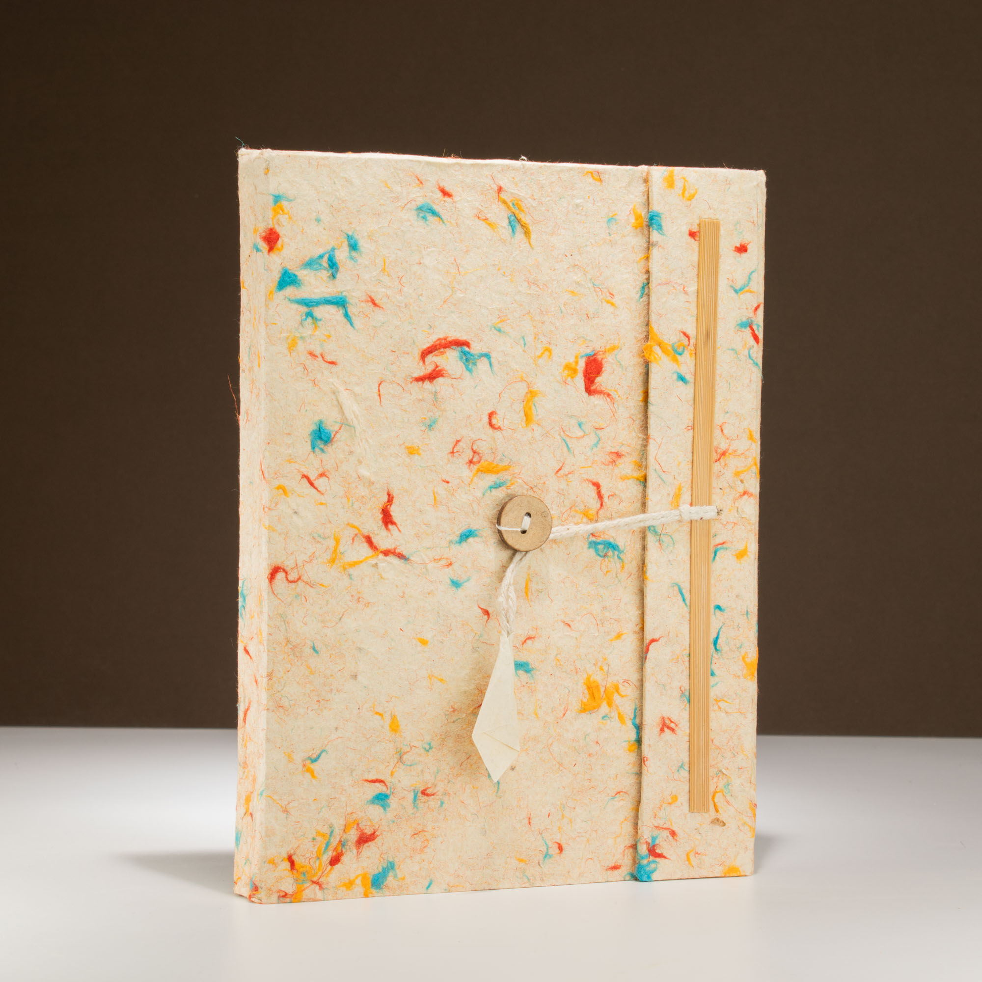 Tento veľký lokta zápisník je vyrobený z recyklovaných bavlnených vlákien a má prirodzene bodkovanú obálku v jemných zemitých tónoch. Každý kus je vďaka organickým materiálom mierne odlišný. Vo vnútri sa nachádza 45 čistých strán z lokta papiera – ideálnych na písanie, denníkové záznamy či kreslenie.