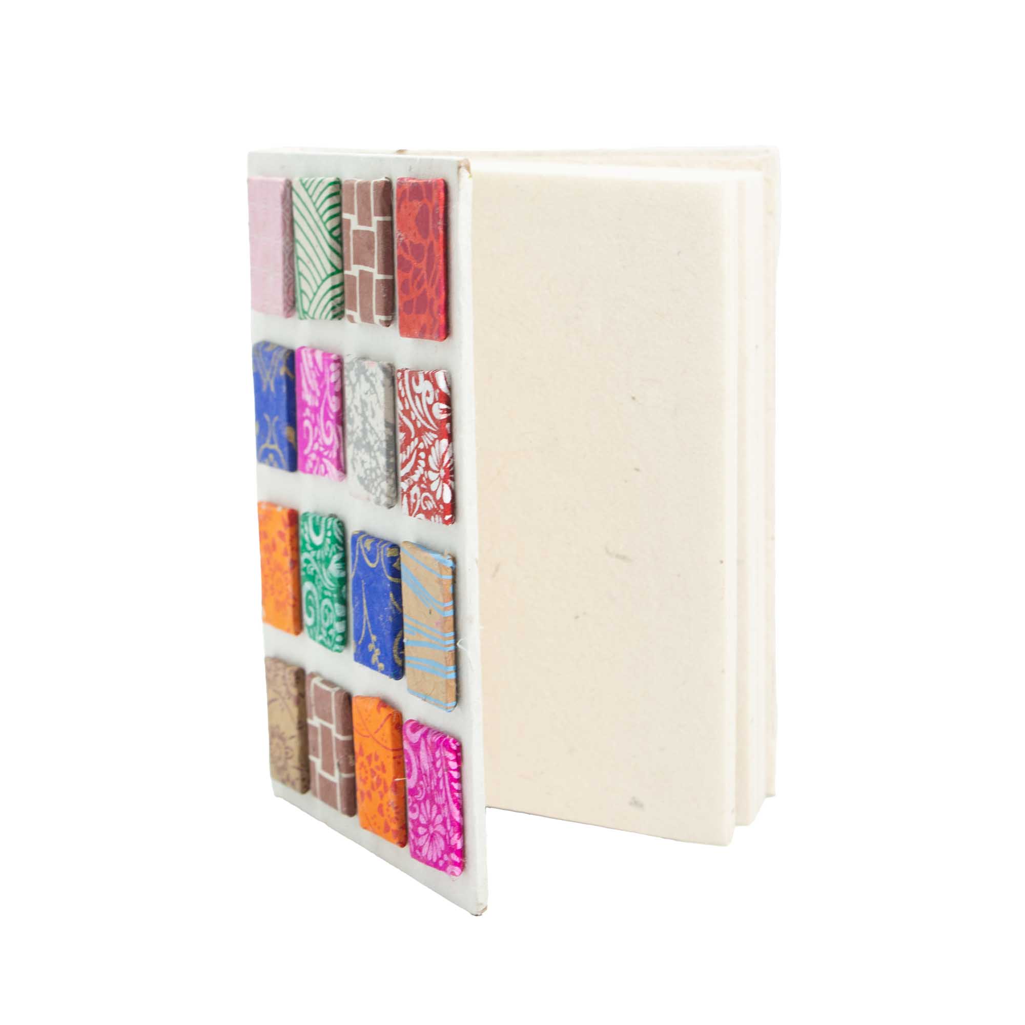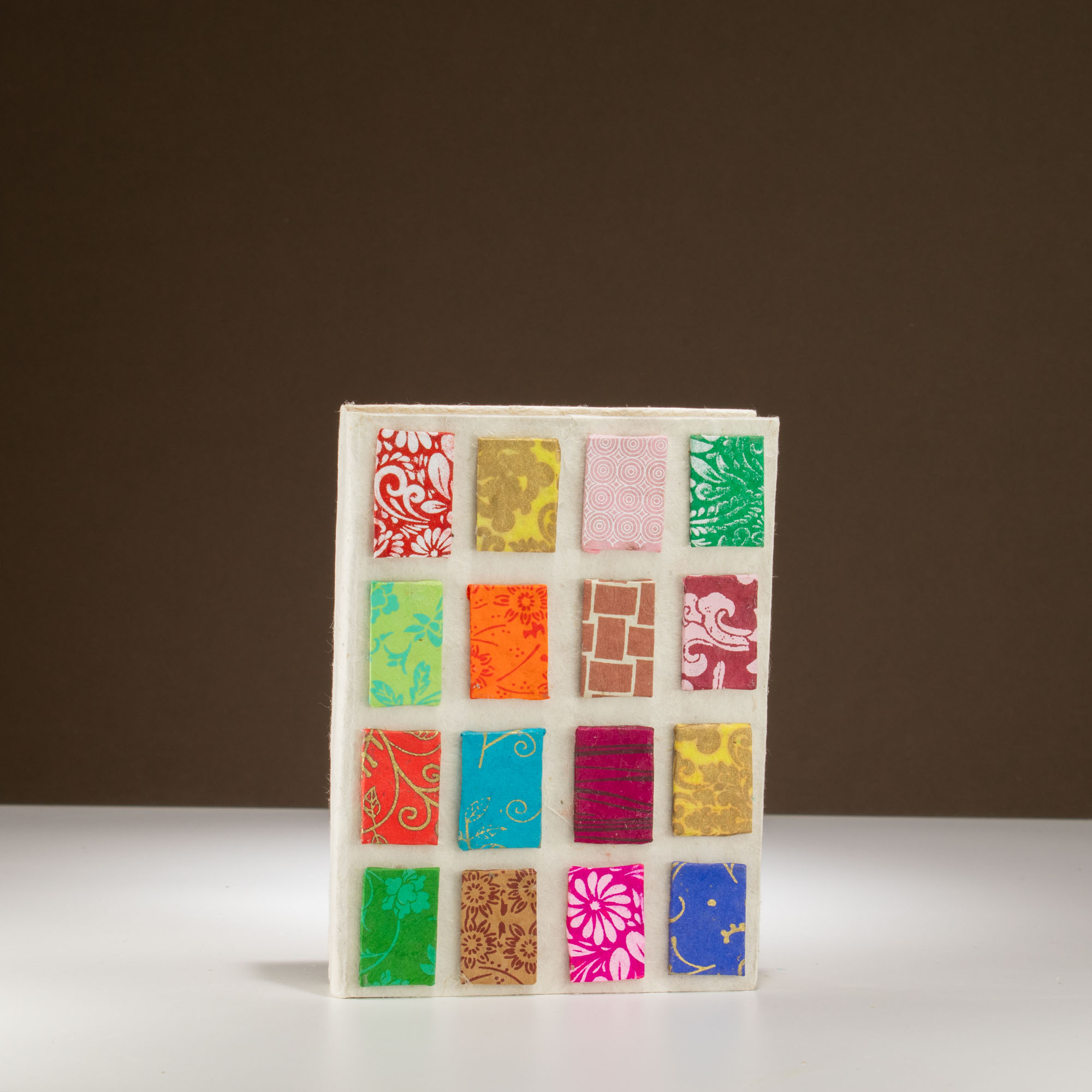Táto prírodná verzia zápisníka Mini Dlaždíc zjednodušuje dizajn, no zachováva jeho detailnosť. Základ z loktového papiera dodáva jednotlivým vzorovaným panelom jemnejší, textúrny charakter, vďaka čomu farby pôsobia mäkko a vyvážene, bez toho, aby dominovali.