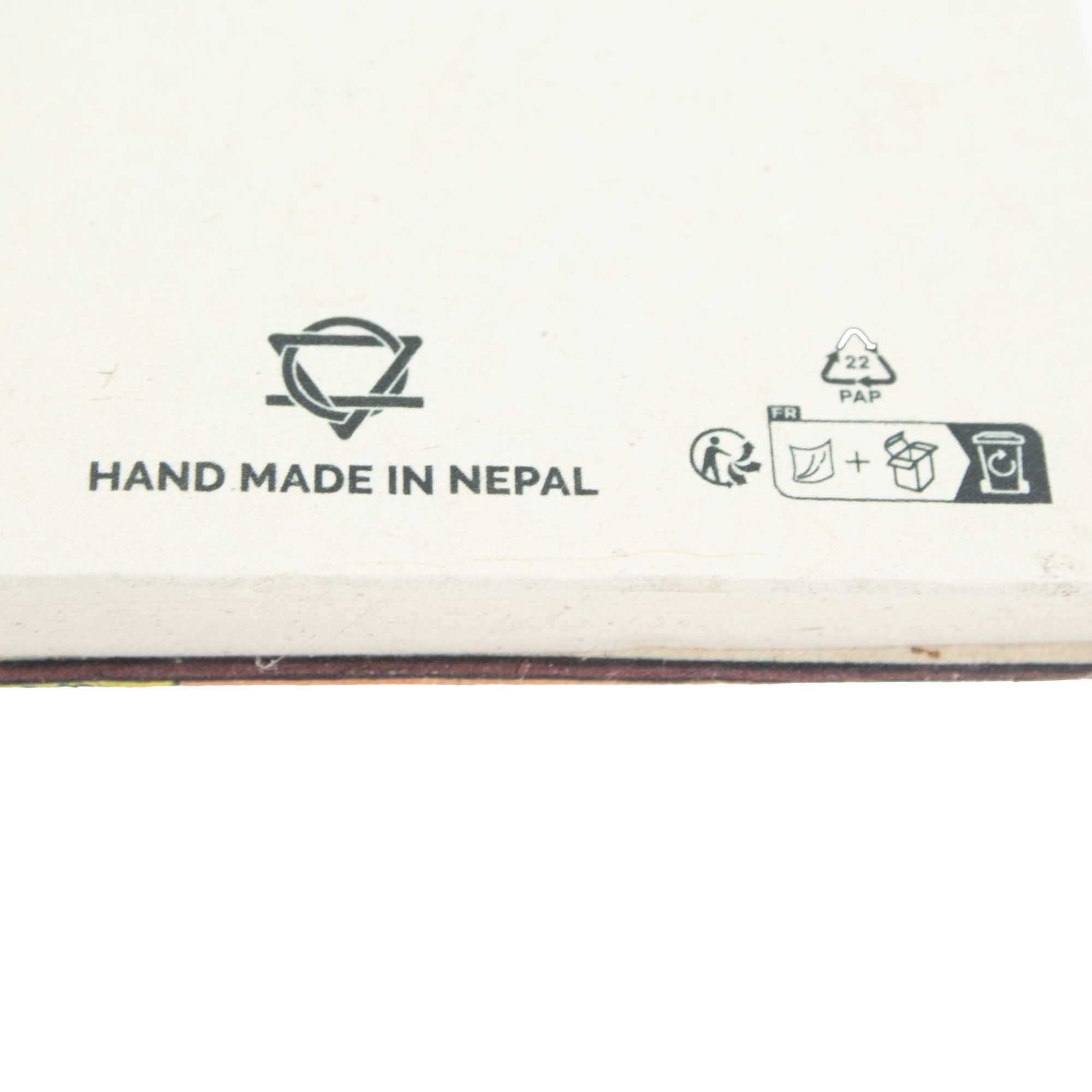 Zápisník je ručne vyrábaný v Nepále z autentického loktového papiera, ktorého prirodzene vláknitý povrch podčiarkuje jeho remeselný pôvod a tradičný charakter. Stredný formát je praktický a prístupný, vhodný pre zákazníkov, ktorí uprednostňujú význam, autenticitu a remeselnú kvalitu pred trendovým dizajnom.