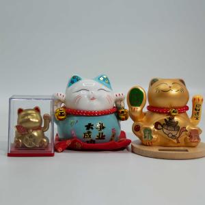 Tieto mačičky, známe ako Maneki-neko, majú významné miesto v čínskej aj japonskej kultúre. S jemne zdvihnutou labkou, ktorá sa plynulo pohybuje v typickom mávajúcom geste, symbolizujú pozvanie hojnosti a šťastia. Ich prítomnosť pomáha vytvárať prívetivú atmosféru, ktorá podporuje pozitívny dojem u zákazníkov aj obchodný úspech.