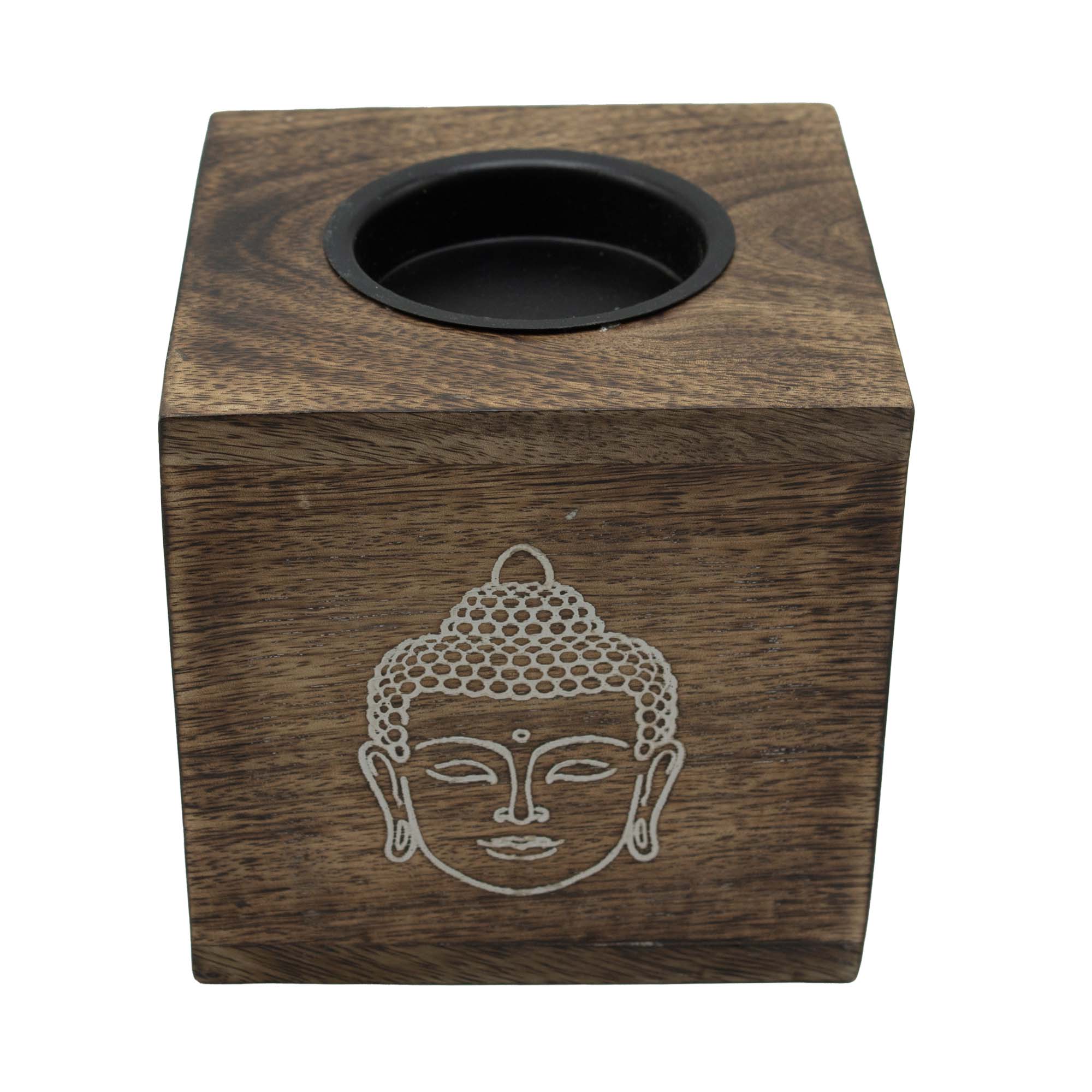 Táto Veľká Štvorcov Aroma Lampa z Mangového Dreva - Tvár Budhu, ktorá pôsobí pokojne a vyrovnane ako dekoratívny prvok. Je vyrobená z masívneho mangového dreva a jej štvorcový tvar vytvára harmonický, uzemnený vzhľad, ktorý sa prirodzene hodí do moderných aj tradičných interiérov.