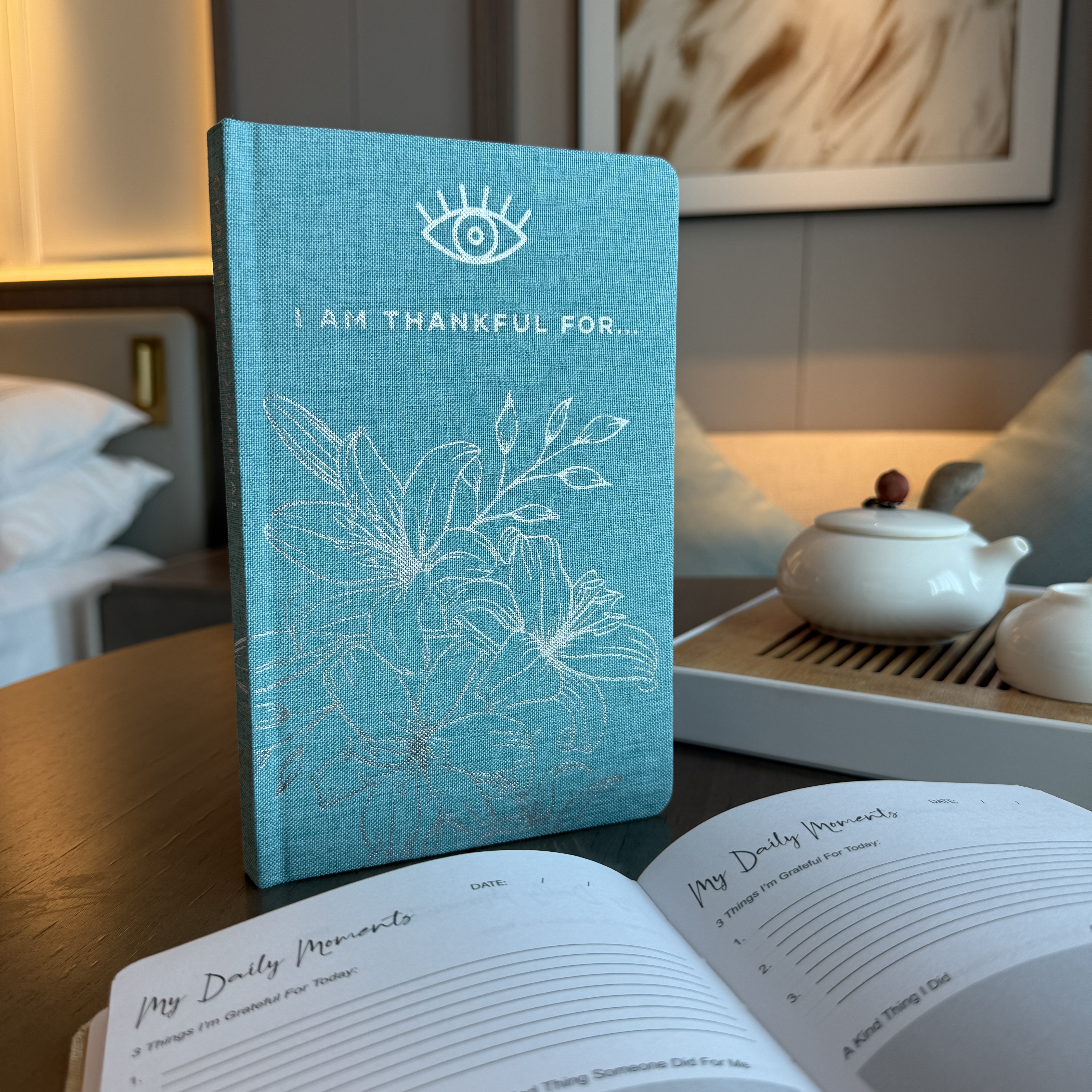 Doplňte svoj papiernický sortiment o premyslený a elegantný kúsok – modrý denník vďačnosti „I am Thankful For“. Jeho svieži modrý obal so strieborným lemovaním pôsobí prémiovo a osloví zákazníkov, ktorí hľadajú zmysluplné a kvalitné papiernictvo.