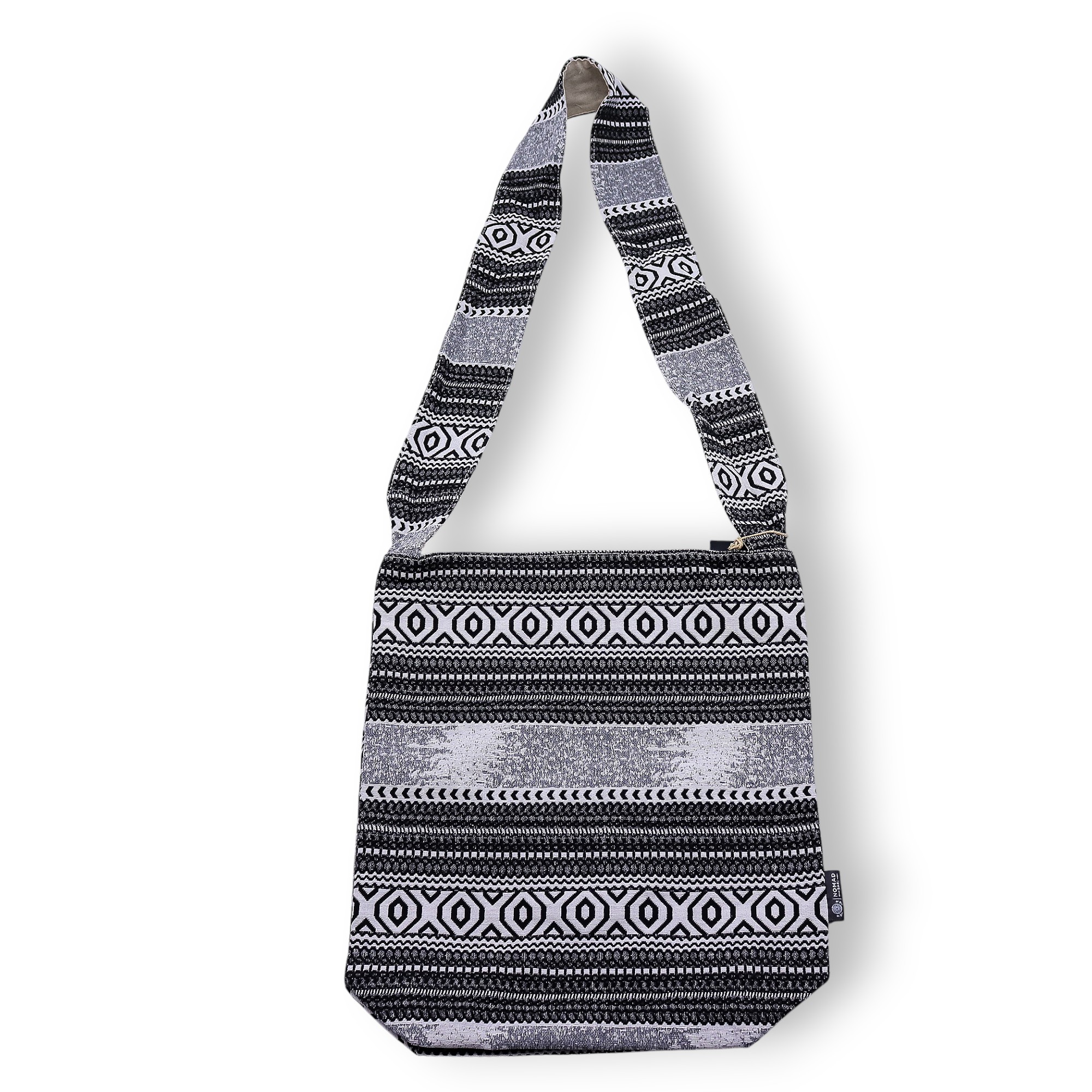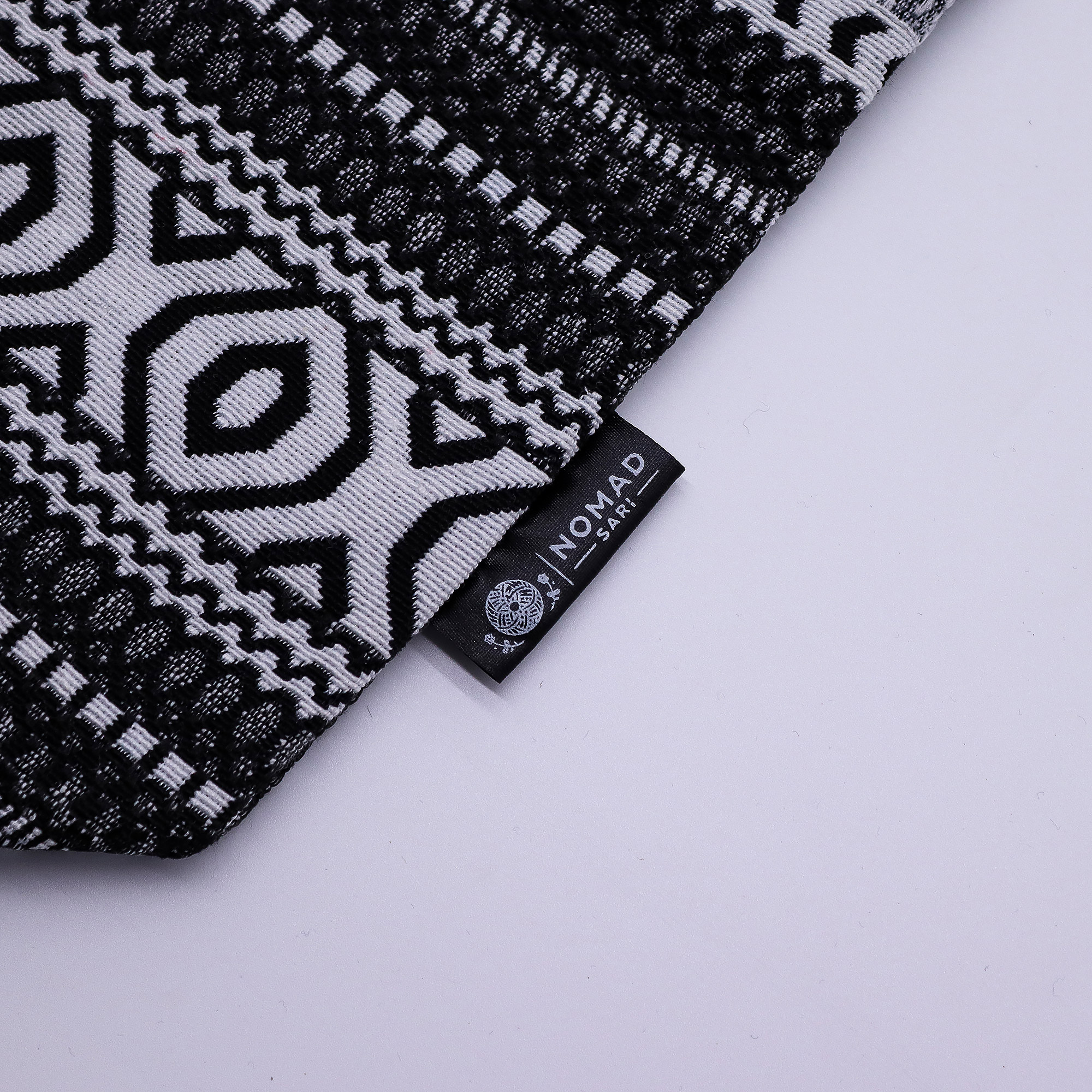 U Mestský Karavan - Nomádska Priestranná Taška predstavuje dokonalú rovnováhu medzi funkčnosťou a remeselným spracovaním. Monochromatická žakárová väzba s geometrickým vzorom dodáva každodennému štýlu výrazný remeselný detail.