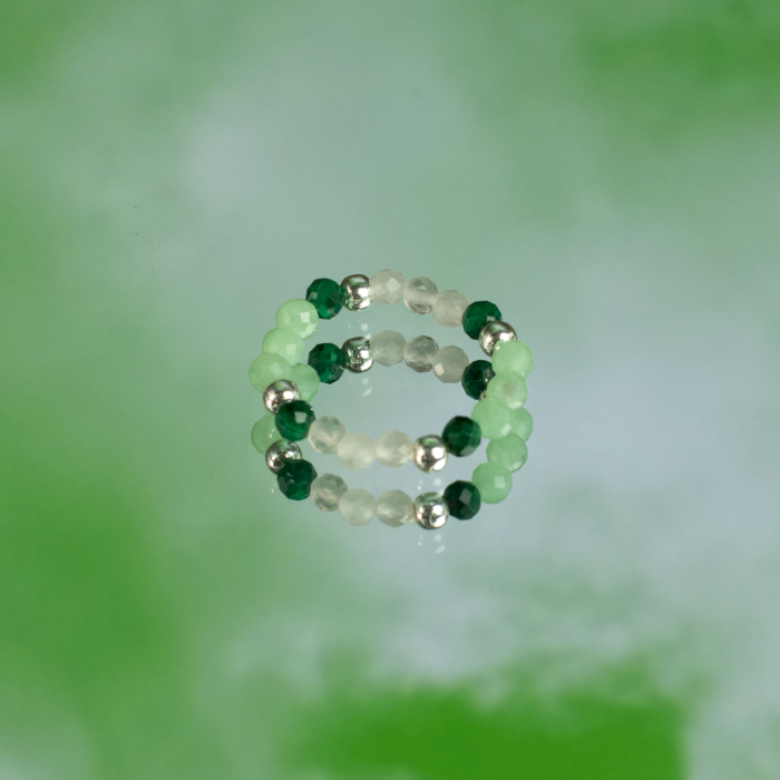 Set prsteňov Lesný Duch je prírodou inšpirovaná trojica drahokamových prsteňov, zakorenená v machových lesných chodníkoch a tichej mágii lesa. Kombinácia aventurínu, malachitu a ruženínu pracuje s paletou sviežich zelených a jemných ružových tónov, ktoré spolu vytvárajú pokojný, vyvážený vzhľad.