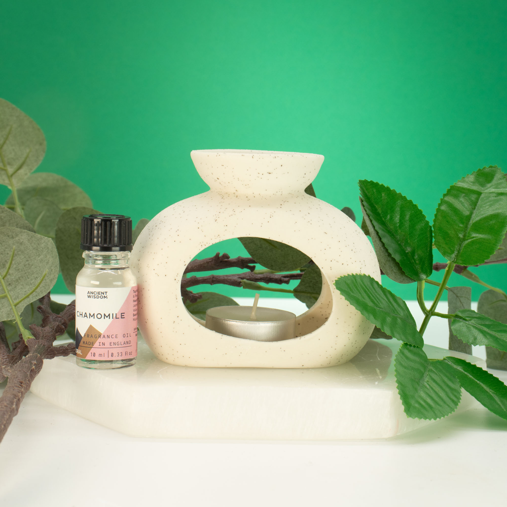 S rozmermi približne 9 × 11 × 5,5 cm má široký oválny otvor, cez ktorý čajová sviečka vytvára príjemné teplé svetlo, zatiaľ čo jemne zohrieva hornú misku. Stačí pridať vodu a pár kvapiek vonného oleja, zapáliť sviečku a vychutnať si postupné uvoľňovanie vône.