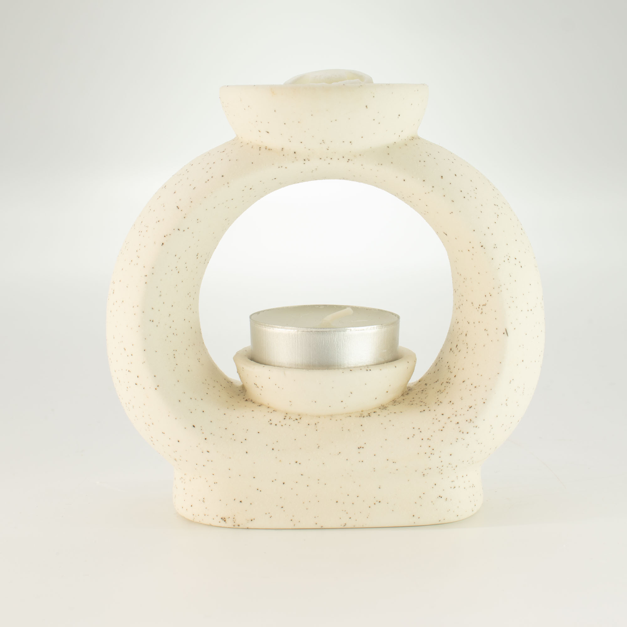Výrazný, no zároveň upokojujúci dizajnový prvok s hladkou, sochárskou siluetou. Táto veľká aromalampa v tvare oválneho kamienka je dokončená jemnou bodkovanou krémovo bielou glazúrou, ktorá jej dodáva prirodzený, kamenný vzhľad vhodný do moderných, spa-inšpirovaných aj minimalistických interiérov.