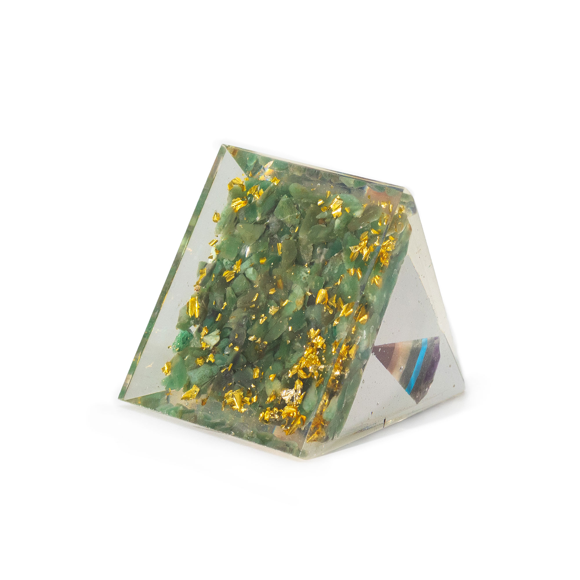 Orgonit je vysoko cenený pre svoje očistné a ochranné energetické vlastnosti, o ktorých sa verí, že pomáhajú neutralizovať elektromagnetické znečistenie a podporujú pokojnú, povznášajúcu atmosféru. Prítomnosť zeleného avanturínu zároveň posilňuje pocity rastu, pozitivity a rovnováhy, vďaka čomu je táto pyramída zmysluplným doplnkom pre meditáciu, dekoráciu alebo ako darček.