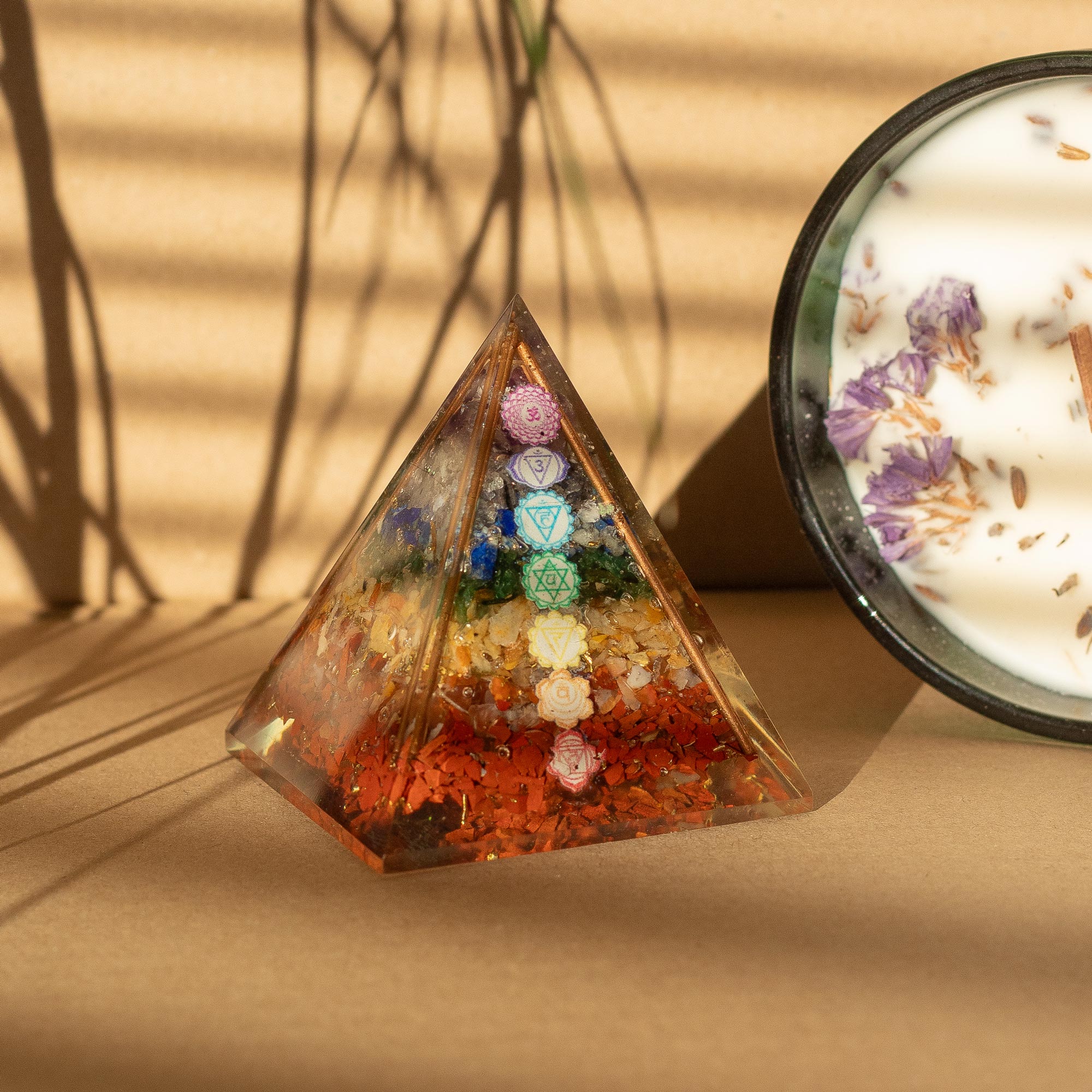Vneste do svojej wellness kolekcie farbu, harmóniu a energetickú rovnováhu s orgonitovou pyramídou strednej veľkosti – Medené tyče so 7 čakrovými kryštálmi. Každá pyramída je ručne vyrobená z živice, kovových pilín a pravých drahých kameňov, pričom obsahuje medené tyče na podporu toku energie a sedem čakrových kryštálov, z ktorých každý symbolizuje vyrovnanosť, vitalitu a vnútorný pokoj.