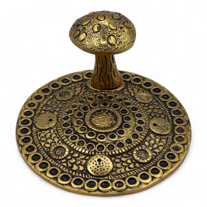 Tanierik v Tvare Huby – Mosadzný Efekt – Stojan na Kadidlo dodá každému priestoru pôvabný, prírodou inšpirovaný akcent. Úprava v štýle vintage mosadze a plasticky vytvorená huba vystupujúca z detailne vzorovaného tanierika vytvárajú výrazný dekoratívny prvok, ktorý upúta aj vtedy, keď sa nepoužíva.