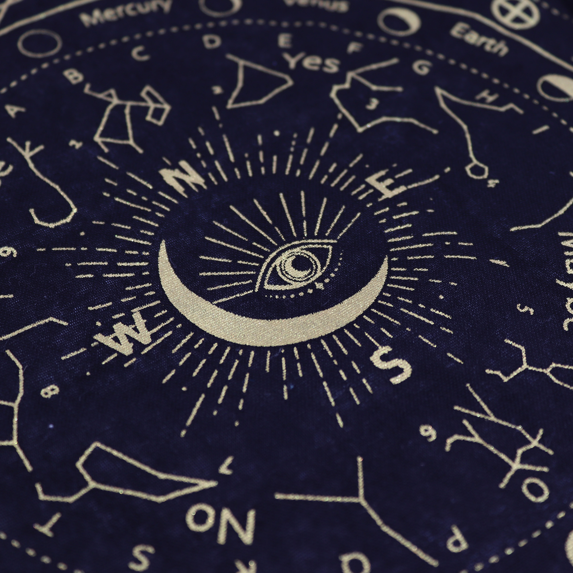 Elegantný a výrazný dizajn Vševidiace oko – čierno-zlatá prináša sofistikovaný a zároveň silný vizuálny efekt. Sýty čierny bavlnený podklad zvýrazňuje detailnú zlatú potlač a vytvára prémiový vzhľad, ktorý okamžite pozdvihne každú rituálnu či vešteckú prezentáciu.