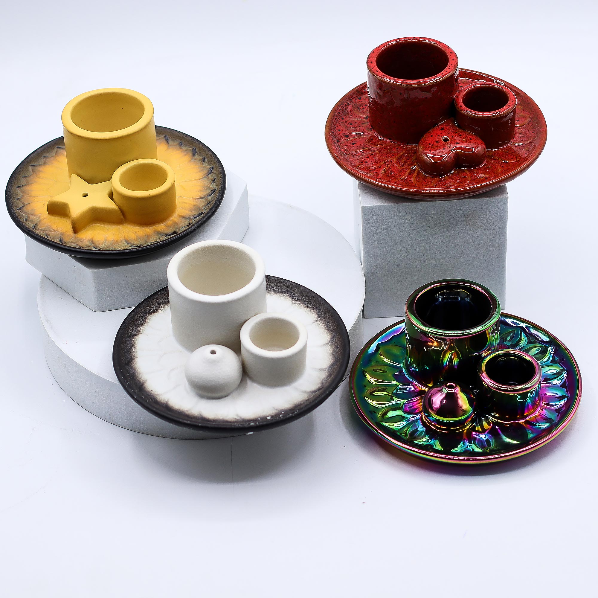 Každý kus je glazovaný jedinečným iridiscentným povrchom, takže žiadny nie je úplne rovnaký. Jeho živý vzhľad osloví zákazníkov, ktorí milujú mystický, bohémsky či umelecký štýl dekorácií, a dodá charakter kolekciám vôní do domácnosti alebo duchovných darčekov.