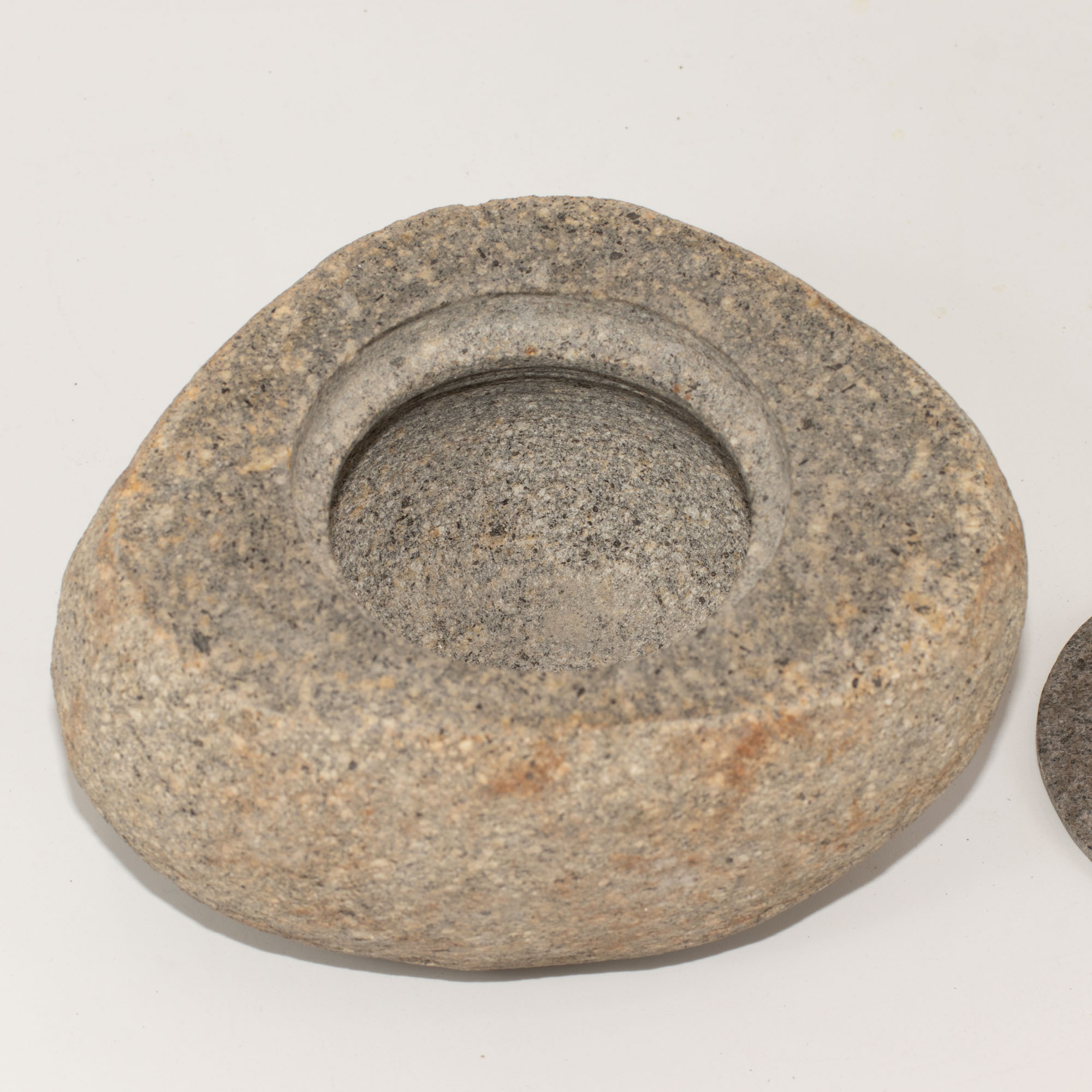 Táto veľká uzemňujúca nádoba je vyrezaná z masívneho riečneho kameňa a zachováva si jeho prirodzenú váhu, textúru aj organický tvar. Vnútro je hladké, zatiaľ čo vonkajší povrch zostáva surový, vďaka čomu pôsobí príjemne v ruke a na každom povrchu prináša pokojný pocit ukotvenia.