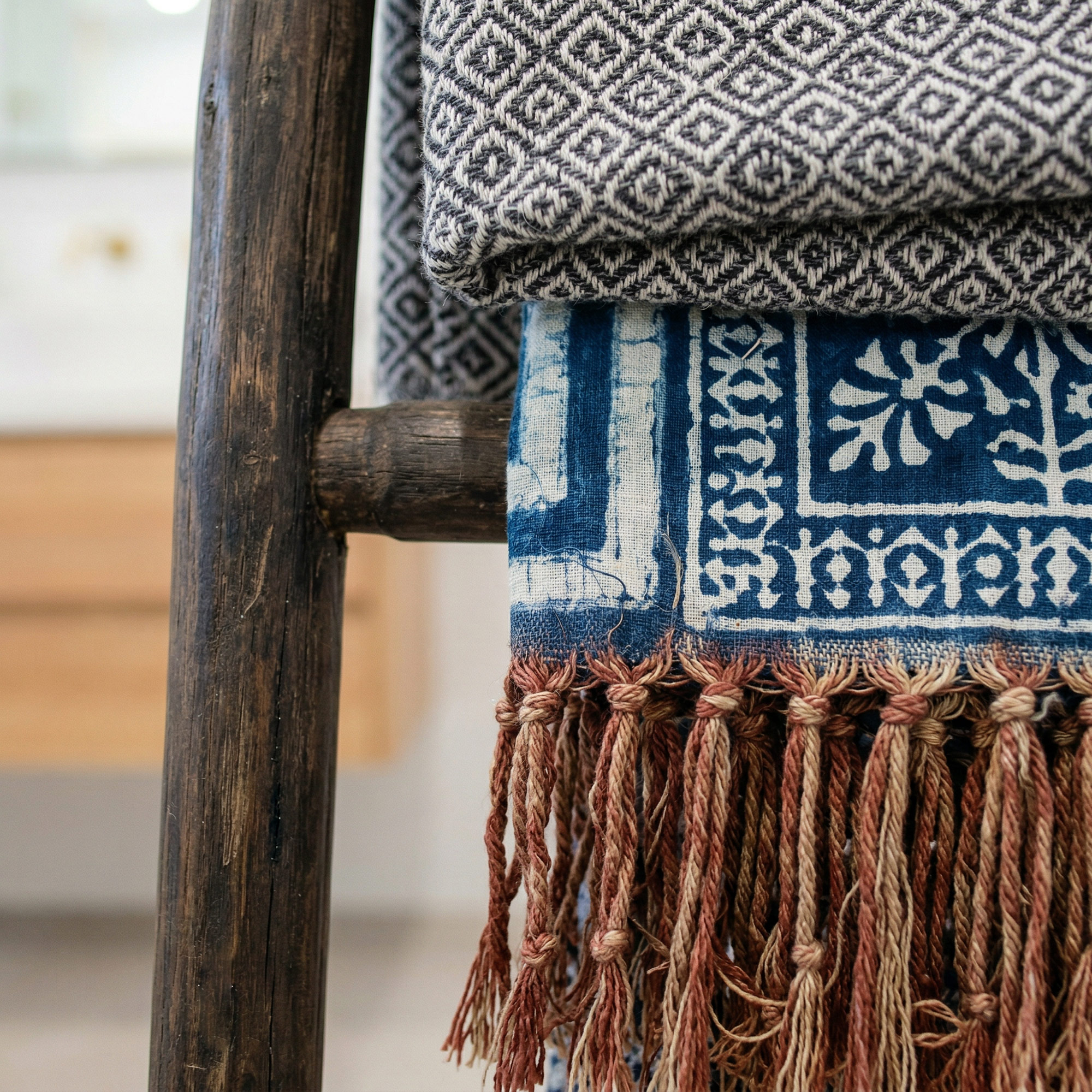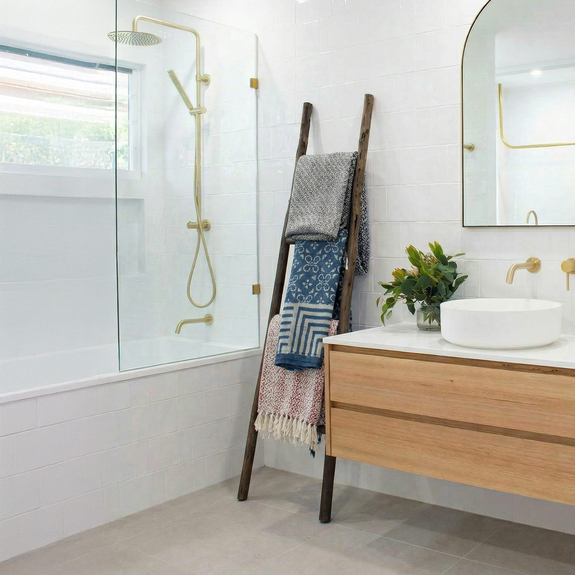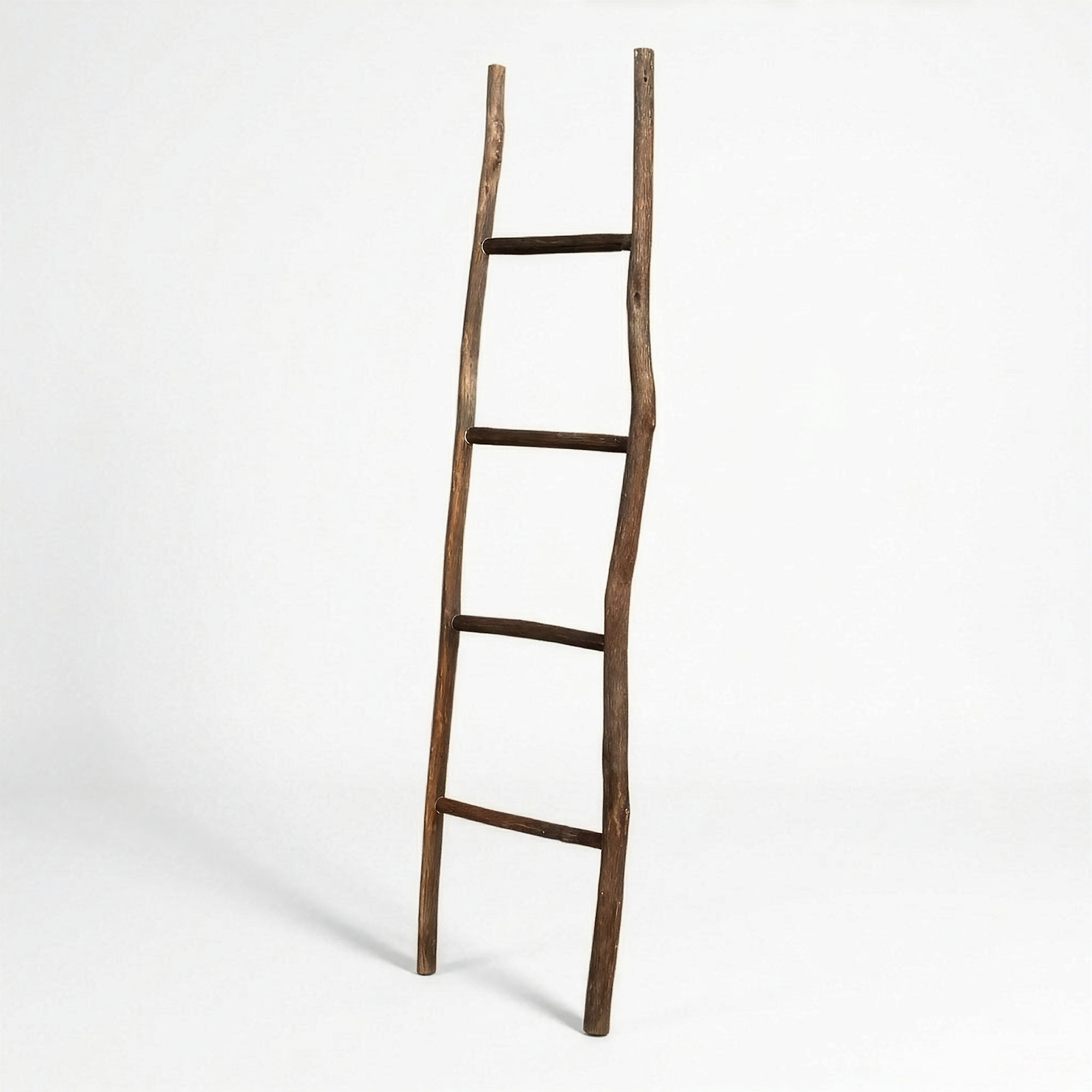 Rebrík je ideálny na doplnenie interiéru o rustikálnu eleganciu. Môže slúžiť na vystavenie diek, uterákov alebo ako výrazný dekoratívny prvok, jednoducho opretý o stenu.