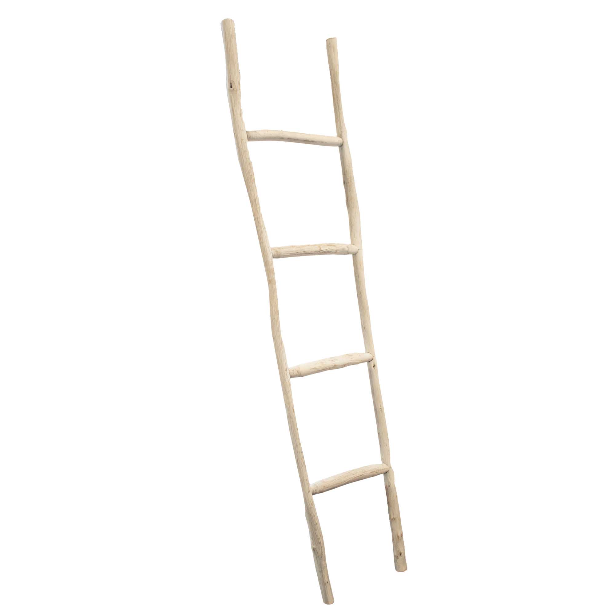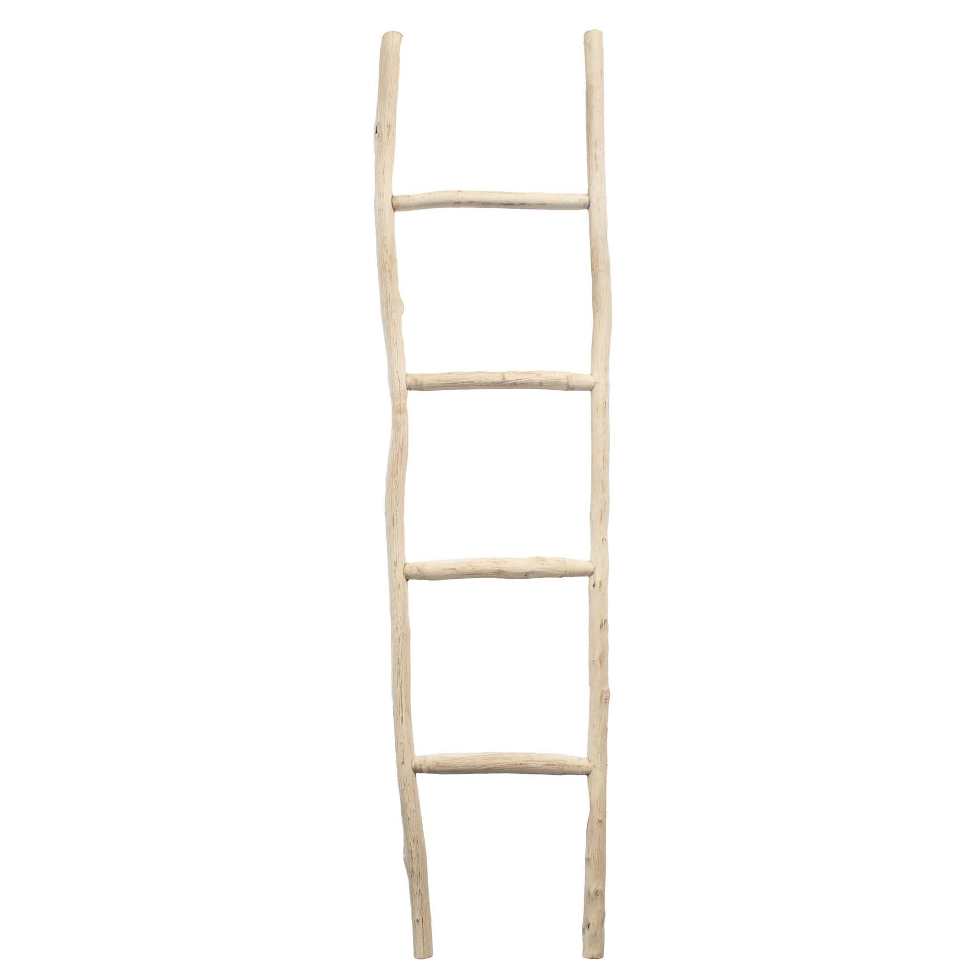 Rebrík je ideálny na doplnenie interiéru o rustikálnu eleganciu. Môže slúžiť na vystavenie diek, uterákov alebo ako výrazný dekoratívny prvok, jednoducho opretý o stenu.