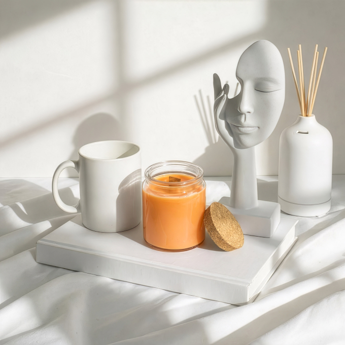 Vôňa sa otvára jasnými, povzbudzujúcimi citrusovými tónmi, ktoré plynule prechádzajú do drevitých a botanických podtónov, čím vytvárajú sviežu a revitalizujúcu atmosféru. Prírodný drevený knôt počas horenia jemne praská a dodáva celému zážitku útulný, zmyslový rozmer. Sviečka je navrhnutá ako kvalitné „prázdne plátno“, pripravené na okamžité prispôsobenie vašej značke.