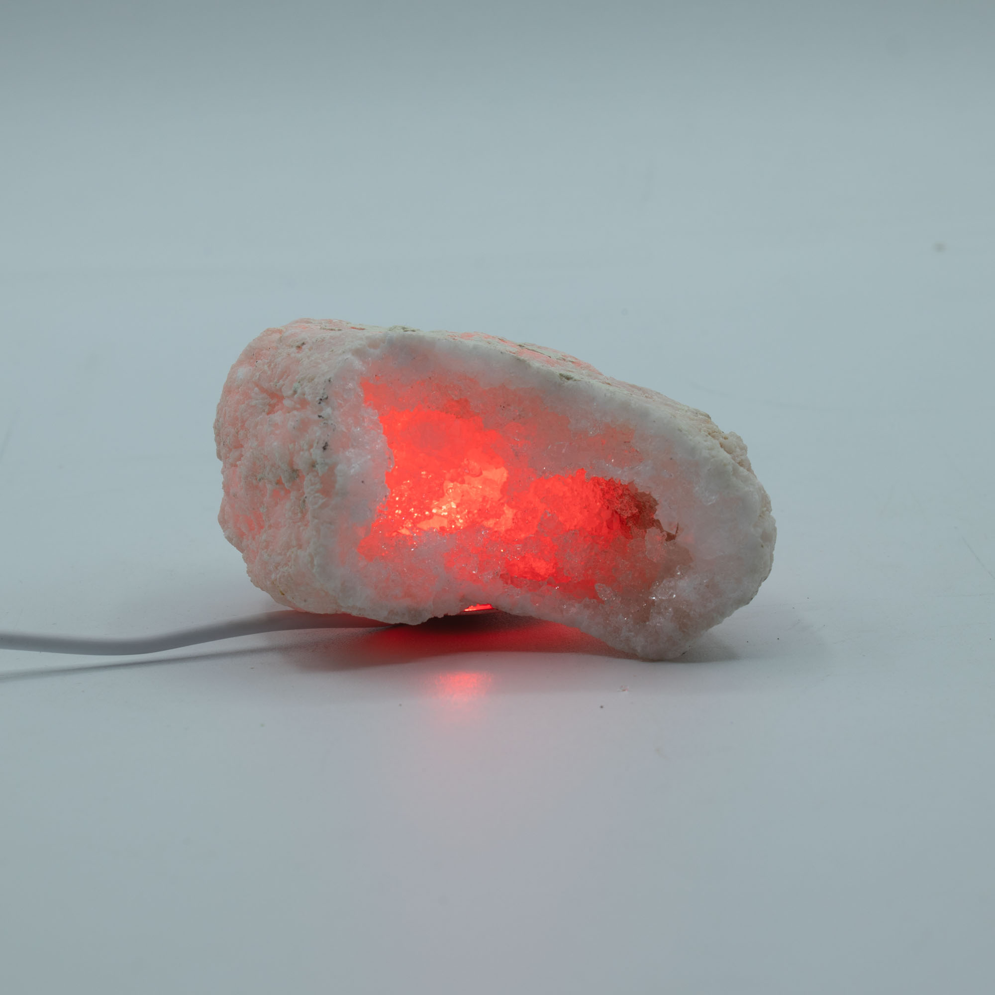 Každý kus je vybavený LED diódami s efektom plynulej zmeny farieb, ktoré prechádzajú sýtymi a žiarivými odtieňmi. Tento dynamický svetelný efekt dodáva prírodným útvarom a dekoračným kompozíciám pohyb a iskru. Mimoriadne pôsobivo vynikne pri geódach, kremeňových drúzach, živicových umeleckých dielach a vyrezávanom kameni, kde meniace sa svetlo odhaľuje vnútorné detaily.