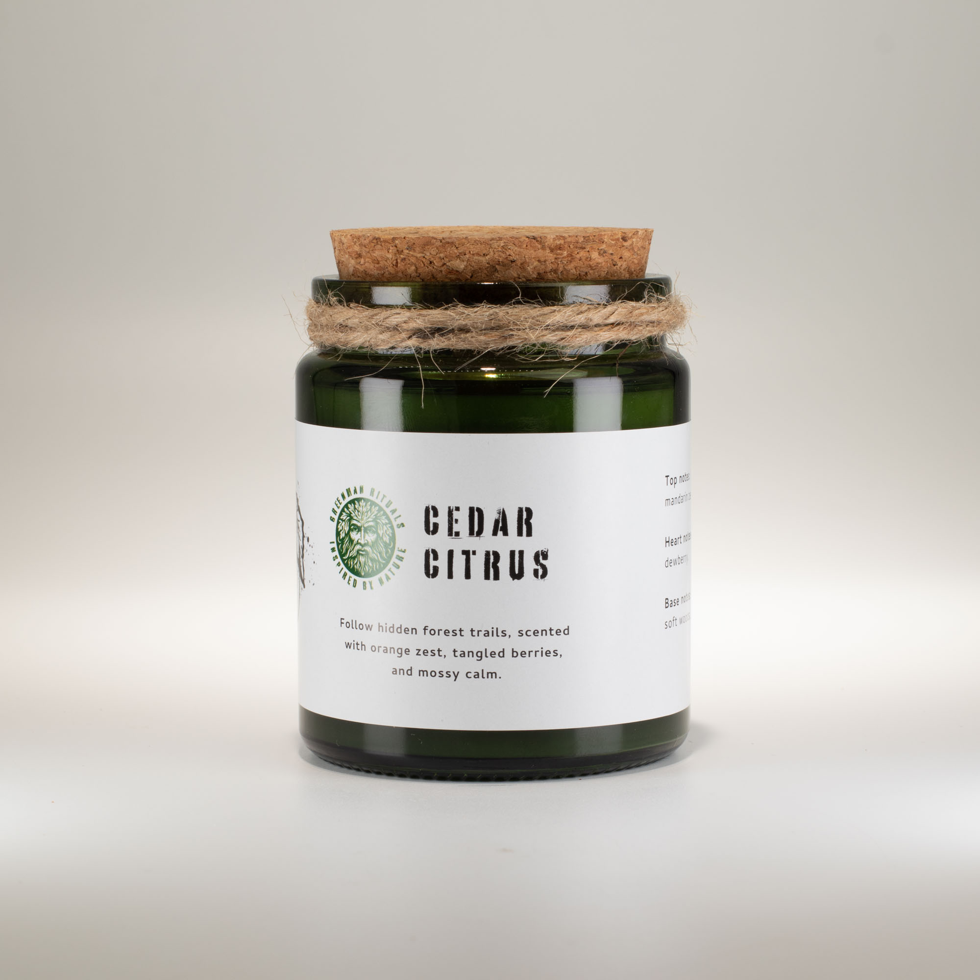 Sviečka je ručne odlievaná z prírodného sójového vosku a doplnená dreveným knôtom, ktorý pri horení jemne praská. Zelený sklenený pohár s korkovým viečkom a kraftová darčeková krabička vytvárajú prirodzený vzhľad pripravený na vystavenie v lifestylových, darčekových aj butikových predajniach. Vegánske zloženie a približná doba horenia 26 hodín zaručujú spoľahlivý výkon.